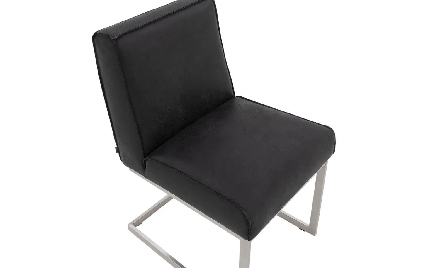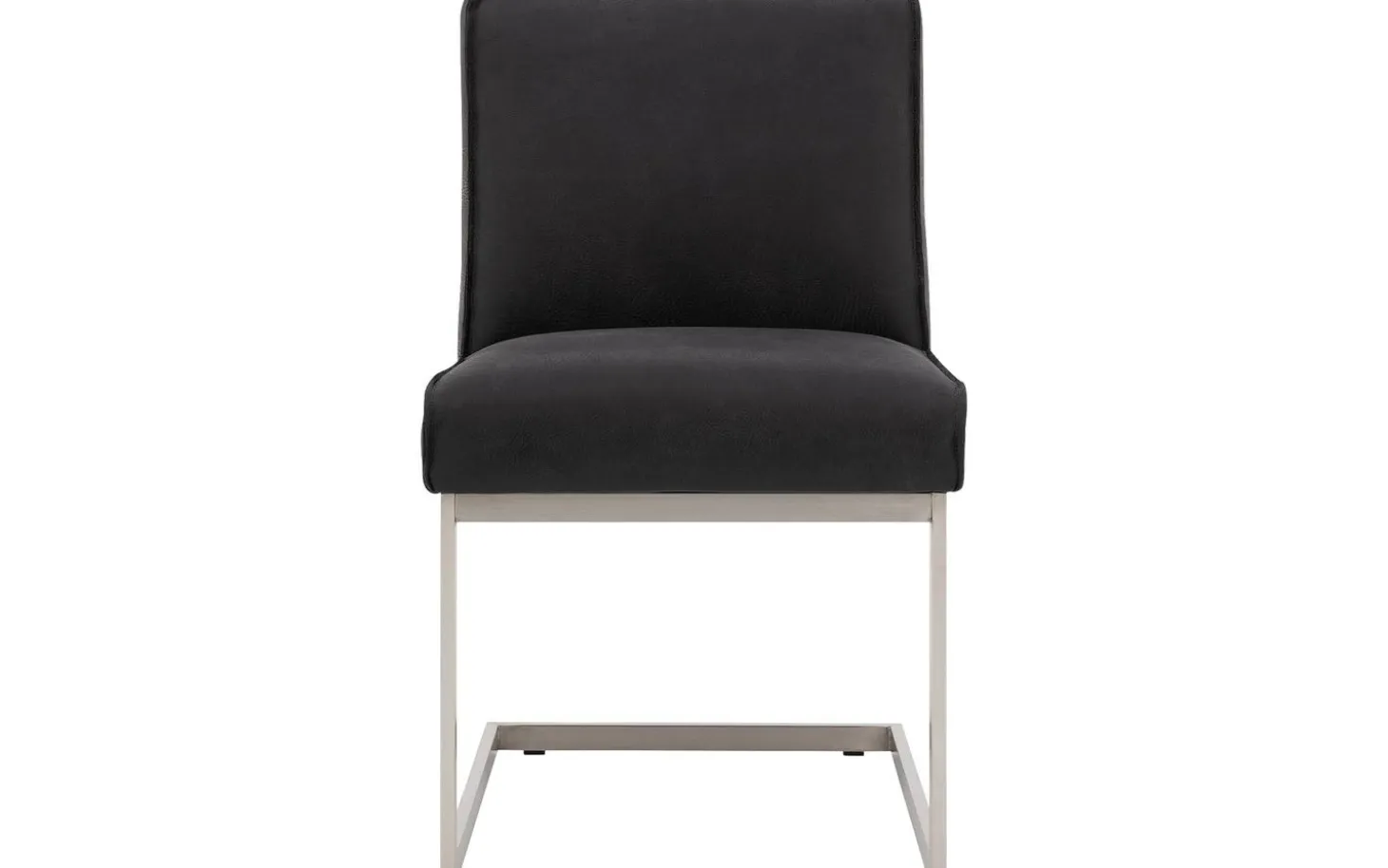 Der schwarze Esszimmerstuhl Tom ohne Armlehne bietet Komfort und Stil an Ihrem Esstisch. Dieser robuste Stuhl passt perfekt zu einem industriellen Interieur dank des Büffelleders mit eleganter Ziernaht. Das Freischwinggestell aus Edelstahl sorgt dafür, dass der Stuhl leicht mit Ihren Bewegungen mitfedert, was besonders angenehm ist während langer Essen oder gemütlicher Drinks mit Freunden und Familie.