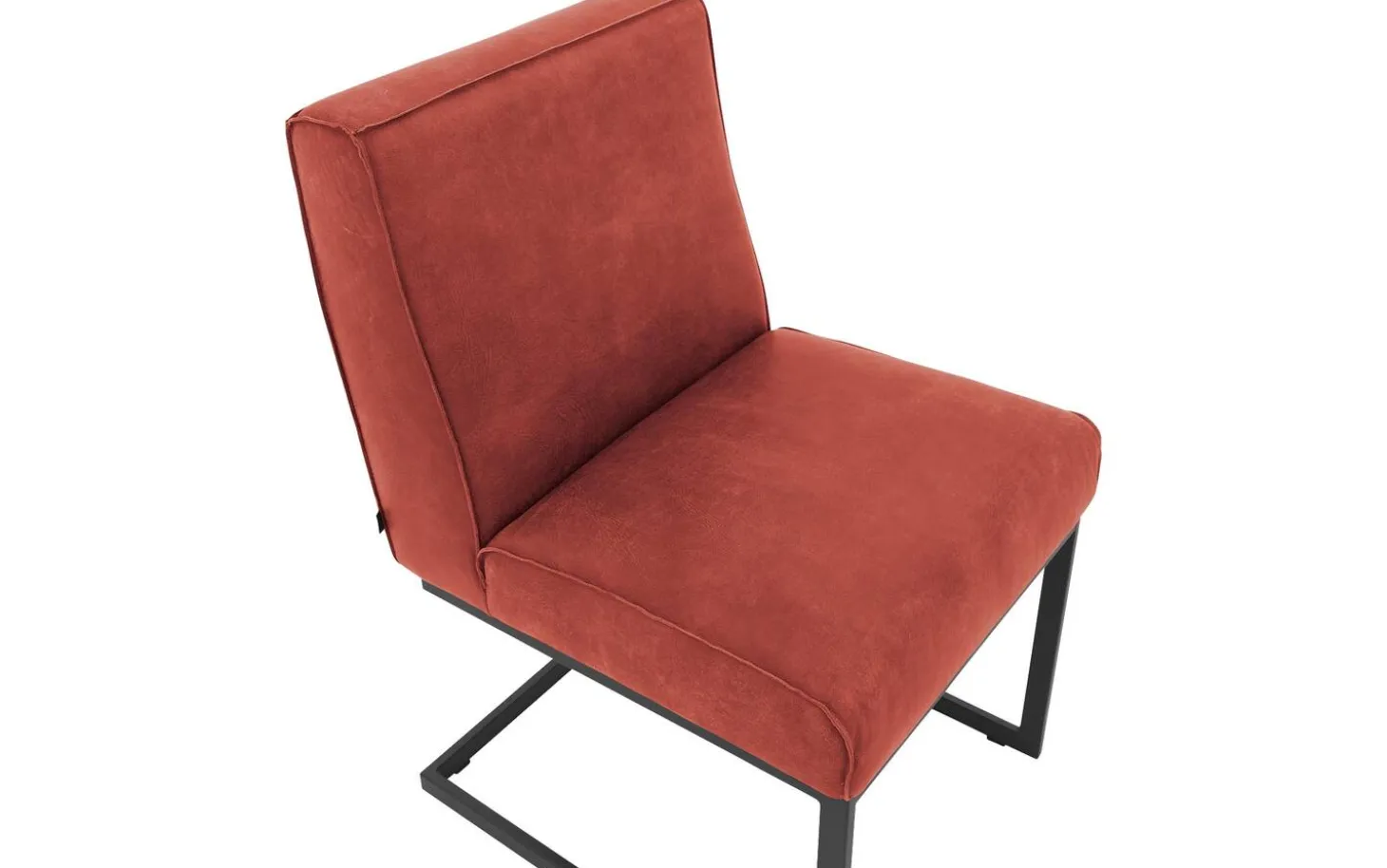 Der rote Esszimmerstuhl Tom ohne Armlehne verleiht Ihrem Esstisch sofort eine industrielle Ausstrahlung. Dieser robust gestaltete Stuhl ist mit weichem Buffalo-Leder in einem warmen steinroten Farbton bezogen. Das anthrazitfarbene Metallgestell mit Freischwinggestell sorgt dafür, dass der Stuhl leicht mit Ihren Bewegungen mitfedert, wodurch das Zusammensitzen am Tisch noch angenehmer wird. Die Kappnaht an der Rückenlehne verleiht diesem Leder-Esszimmerstuhl eine handwerkliche Ausstrahlung.