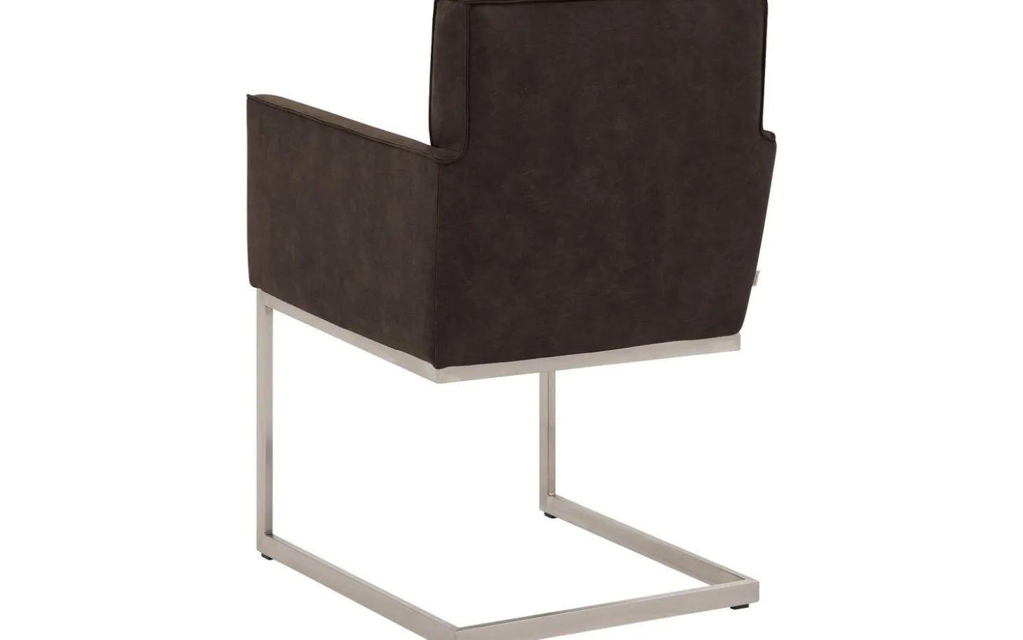 Der braune Esszimmerstuhl Tom mit Armlehne bietet eine robuste industrielle Ausstrahlung für Ihren Essbereich. Dieser Stuhl aus Mikroleder fühlt sich herrlich weich an und ist mit einer eleganten Ziernaht versehen. Das Besondere an Tom ist das Freischwinggestell aus Edelstahl, das leicht mit Ihren Bewegungen mitfedert – besonders angenehm während langer Essen. Perfekt zu kombinieren mit der Esszimmerbank Tom für einen vollständigen und gemütlichen Essbereich mit charakterstarkem Aussehen.