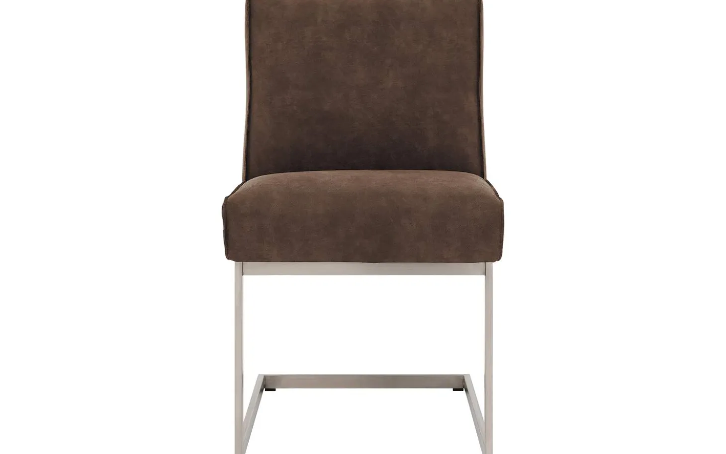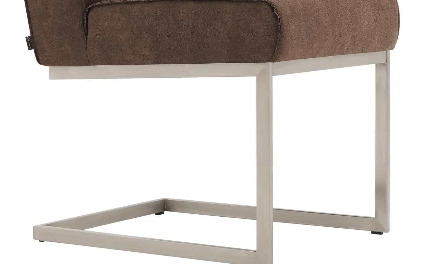 Brauner Esszimmerstuhl Tom aus Mikroleder ohne Armlehne bietet industrielle Robustheit für Ihren Essbereich. Dieser Esszimmerstuhl von Goossens Wohnen zeichnet sich durch das weiche Mikromaterial und eine elegante Kappnaht aus. Das Besondere an Tom ist das Freischwinggestell aus Edelstahl, das leicht mit Ihren Bewegungen mitschwingt. So können Sie besonders lange und bequem am Tisch sitzen, perfekt für ausgedehnte Abendessen oder gesellige Runden mit Freunden.