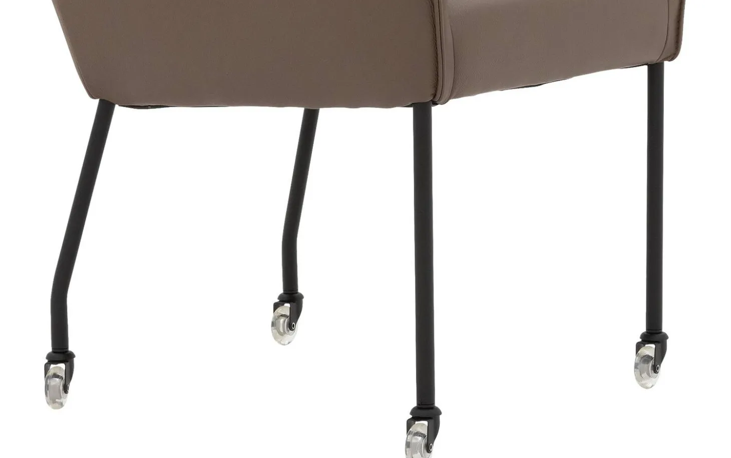 Das schwarze Gestell mit Pulverbeschichtung bildet einen schönen Kontrast zum braunen Lederbezug. Die Rollen machen diesen Stuhl nicht nur stilvoll, sondern auch praktisch in der Anwendung. Die Sitzbreite von 45 cm und Sitztiefe von ebenfalls 45 cm bieten ausreichend Platz für komfortables Sitzen.