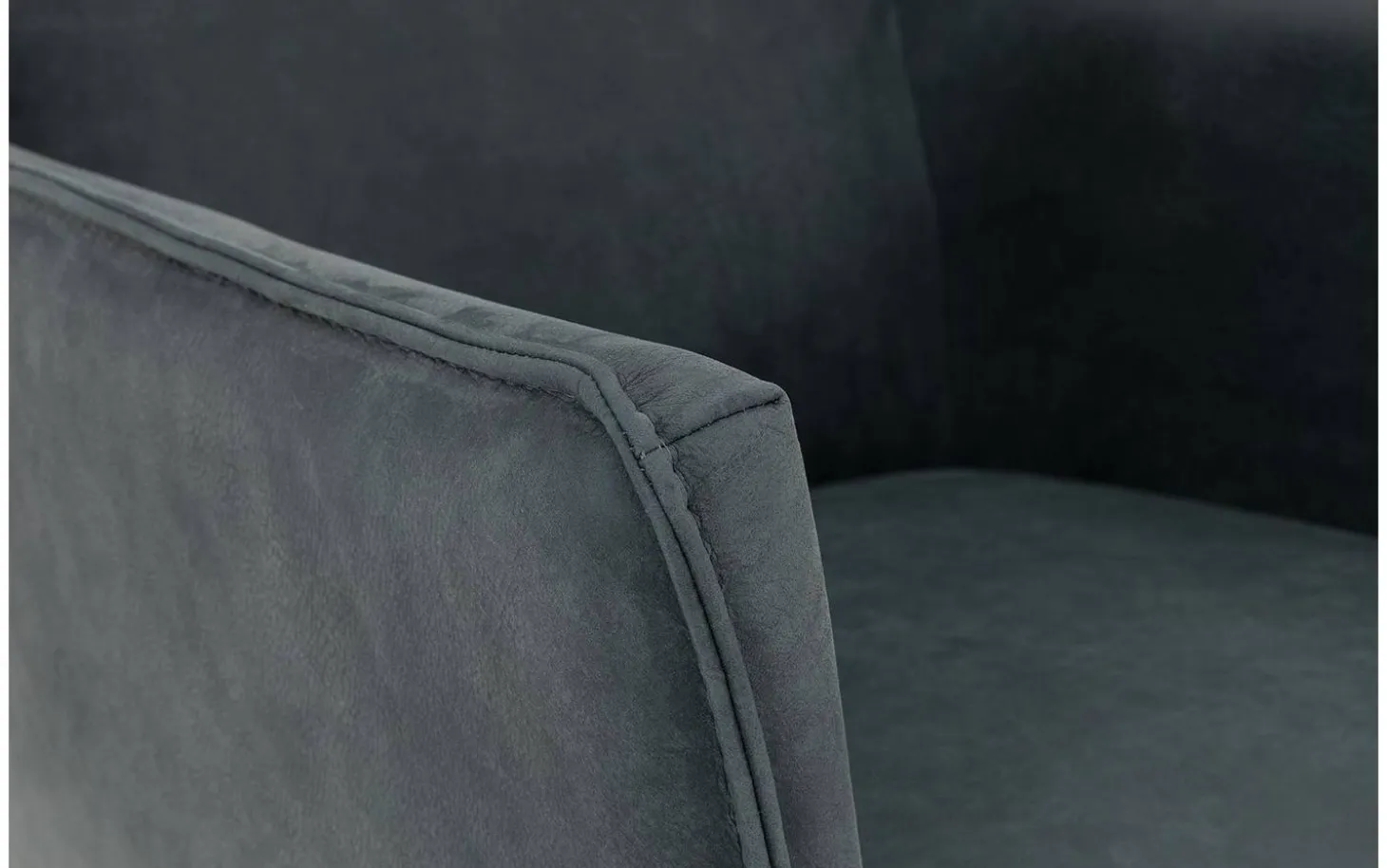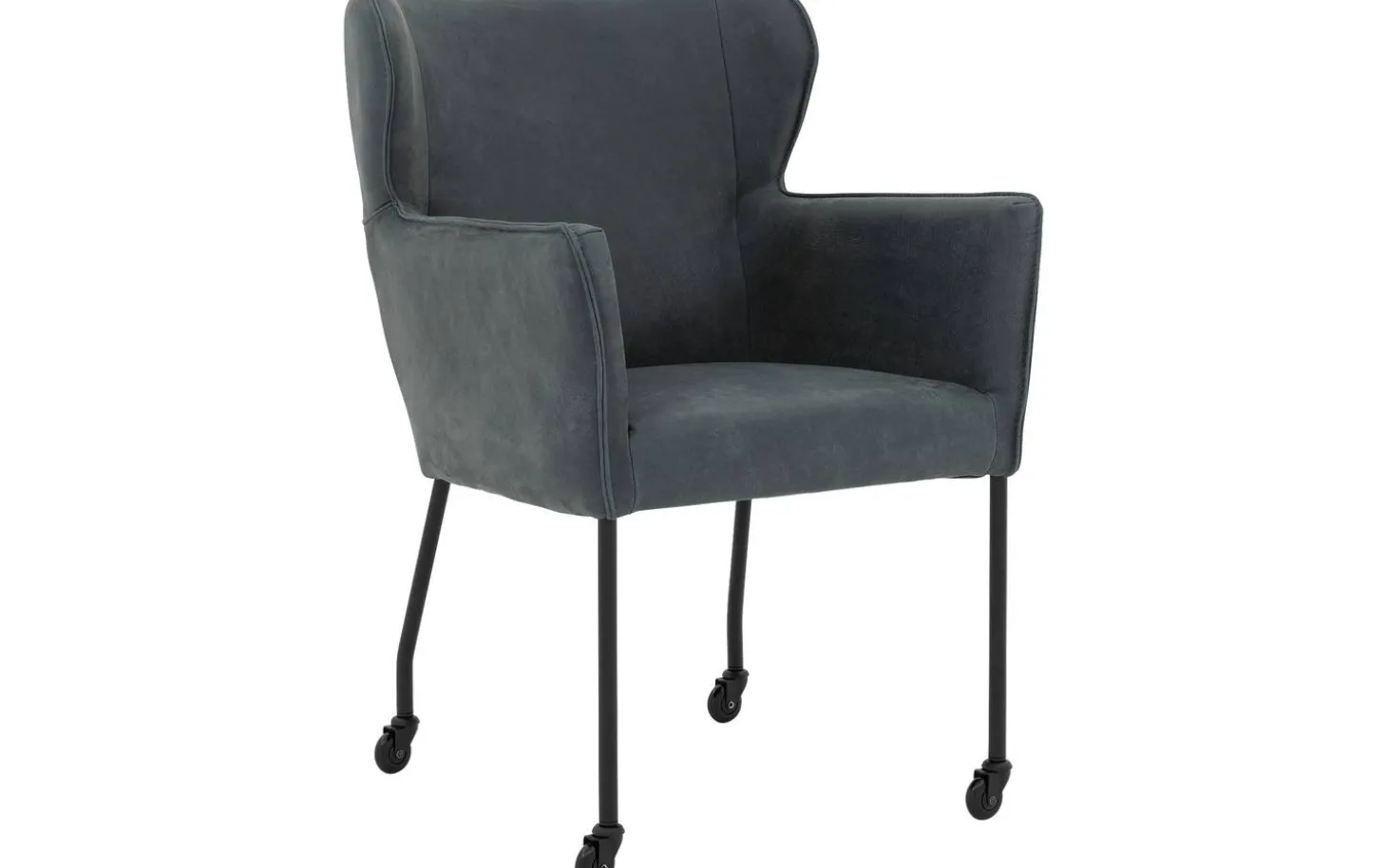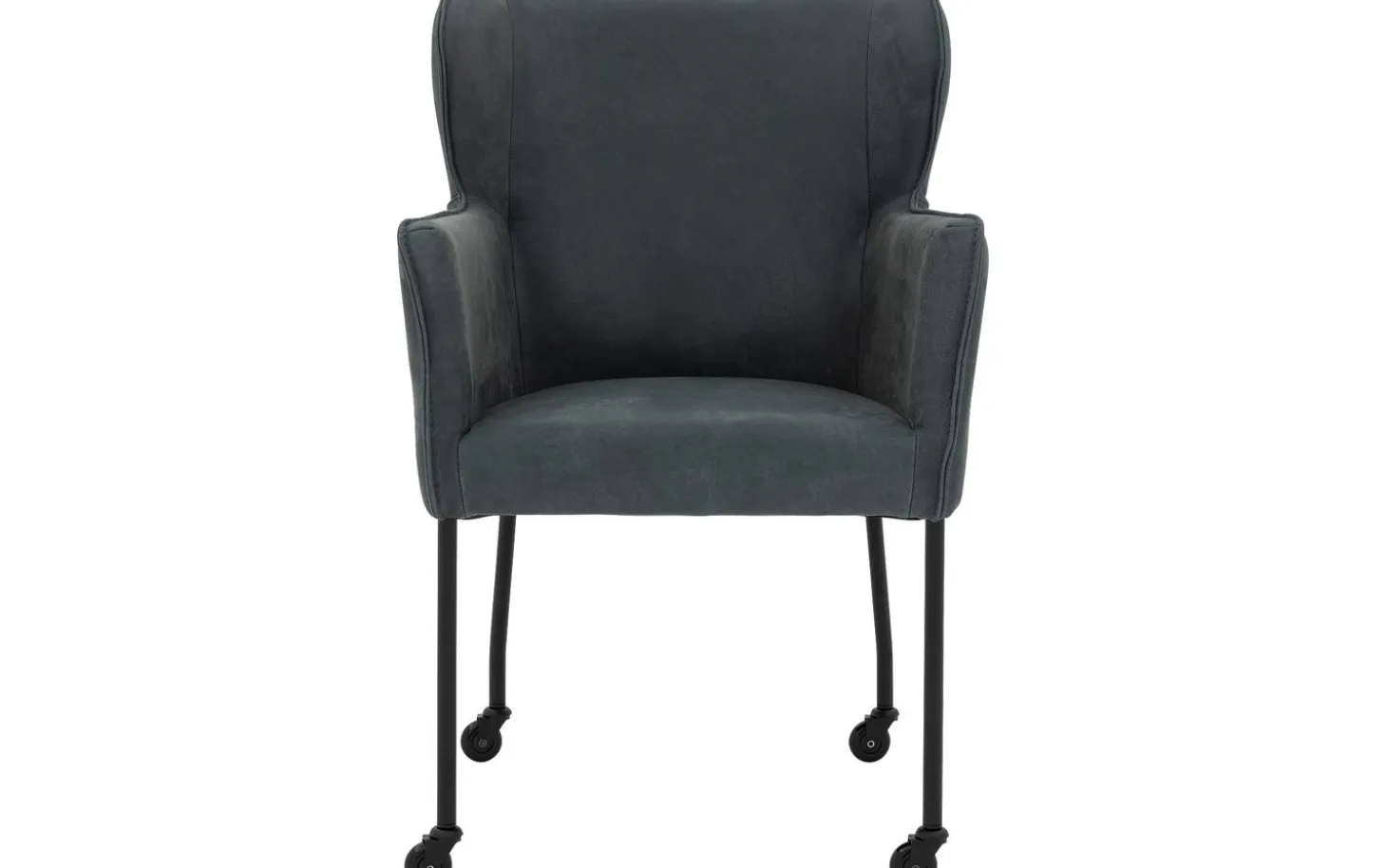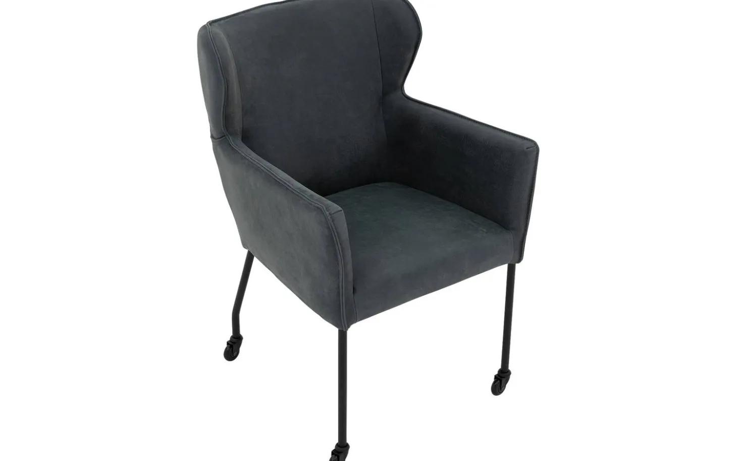 Der blaue Esszimmerstuhl Leogang mit Armlehne bringt Eleganz an Ihren Esstisch. Dieser Lederstuhl erinnert an einen klassischen Ohrensessel, jedoch in einem erfrischend modernen Design. Mit seiner schlanken Form und dem luftigen Untergestell mit schwarzen Rollen nehmen Sie mühelos am Tisch Platz oder verlassen ihn wieder. Die Buffalo-Lederbezüge verleihen dem Leogang eine luxuriöse, wildlederähnliche Ausstrahlung, die Ihr Interieur sofort aufwertet.