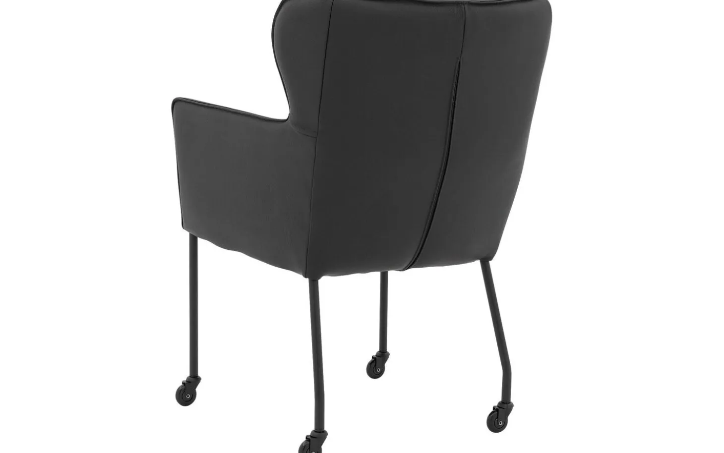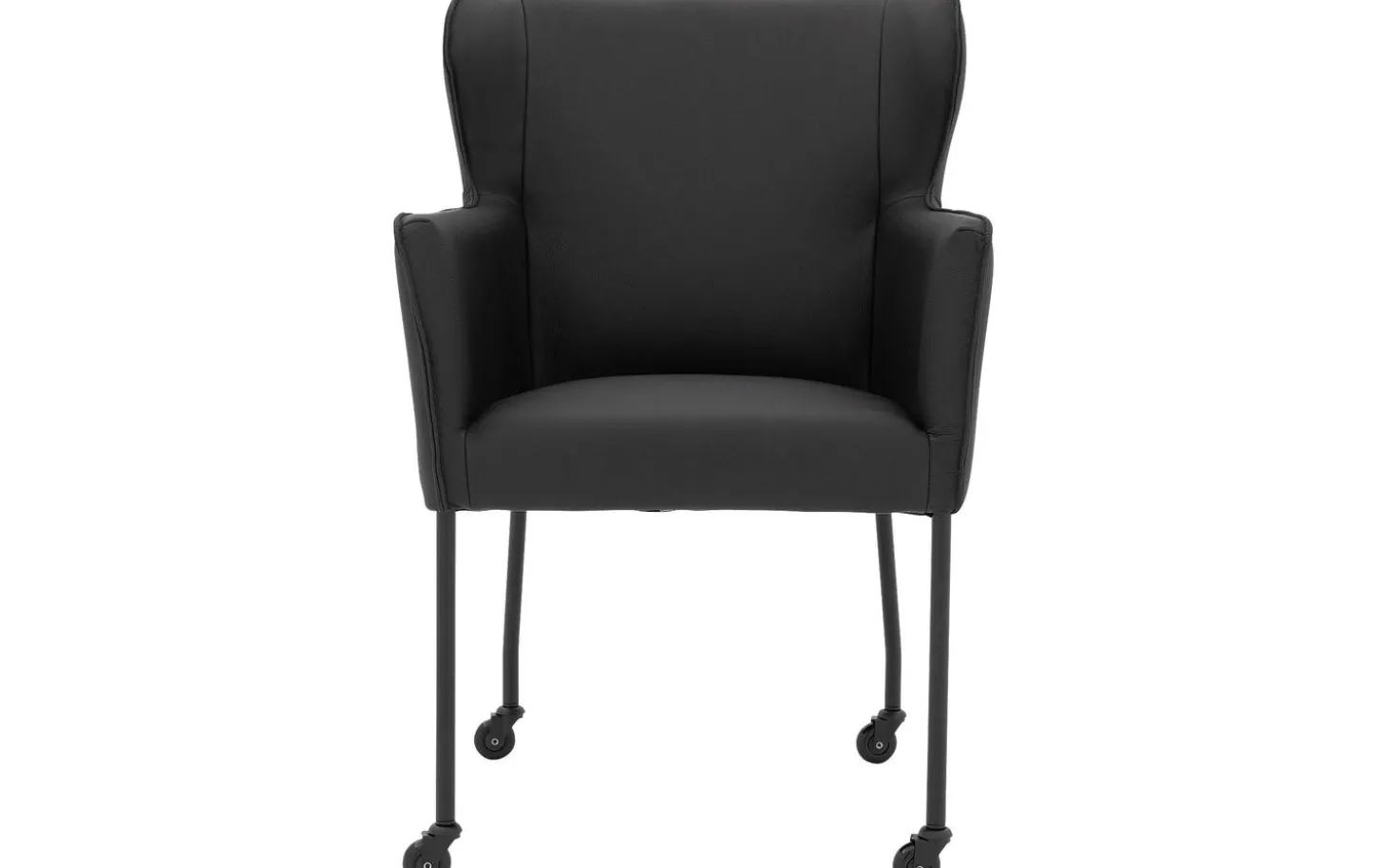 Der schwarze Esszimmerstuhl Leogang mit Armlehne verbindet Eleganz mit praktischem Komfort. Dieser schlanke Stuhl erinnert an einen klassischen Ohrensessel im modernen Gewand. Das schwarze dicke Master-Leder verleiht einen luxuriösen Ausdruck, während das schlanke Untergestell mit Rollen für einen luftigen Look und leichtes Heranrücken sorgt. Genießen Sie lange Abendessen auf diesem stilvollen Esszimmerstuhl, der sowohl Ihre Augen als auch Ihren Rücken erfreut.