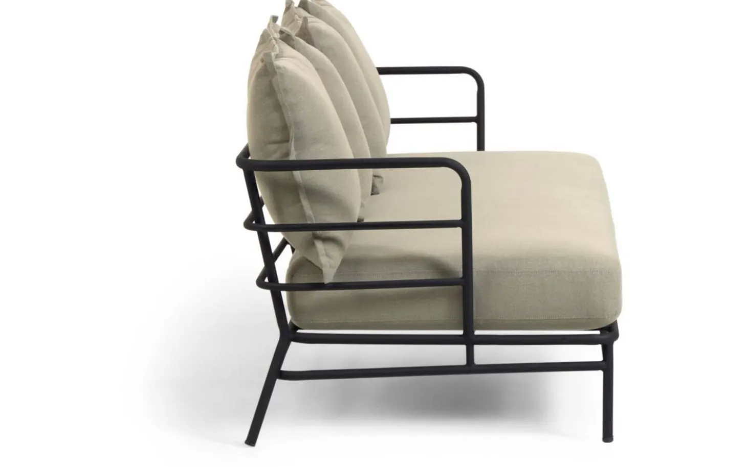 Graue Loungebank Mareluz bringt Luxus und Komfort in Ihren Garten oder auf Ihre Terrasse. Dieses stilvolle Außensofa mit einer Breite von 197 cm verbindet ein schlichtes Design mit herrlichem Komfort. Das schwarze Stahlgestell verleiht der Bank eine leichte, räumliche Ausstrahlung, während der graue Stoffbezug für einen zeitlosen Look sorgt. Perfekt für entspannte Momente im Freien.