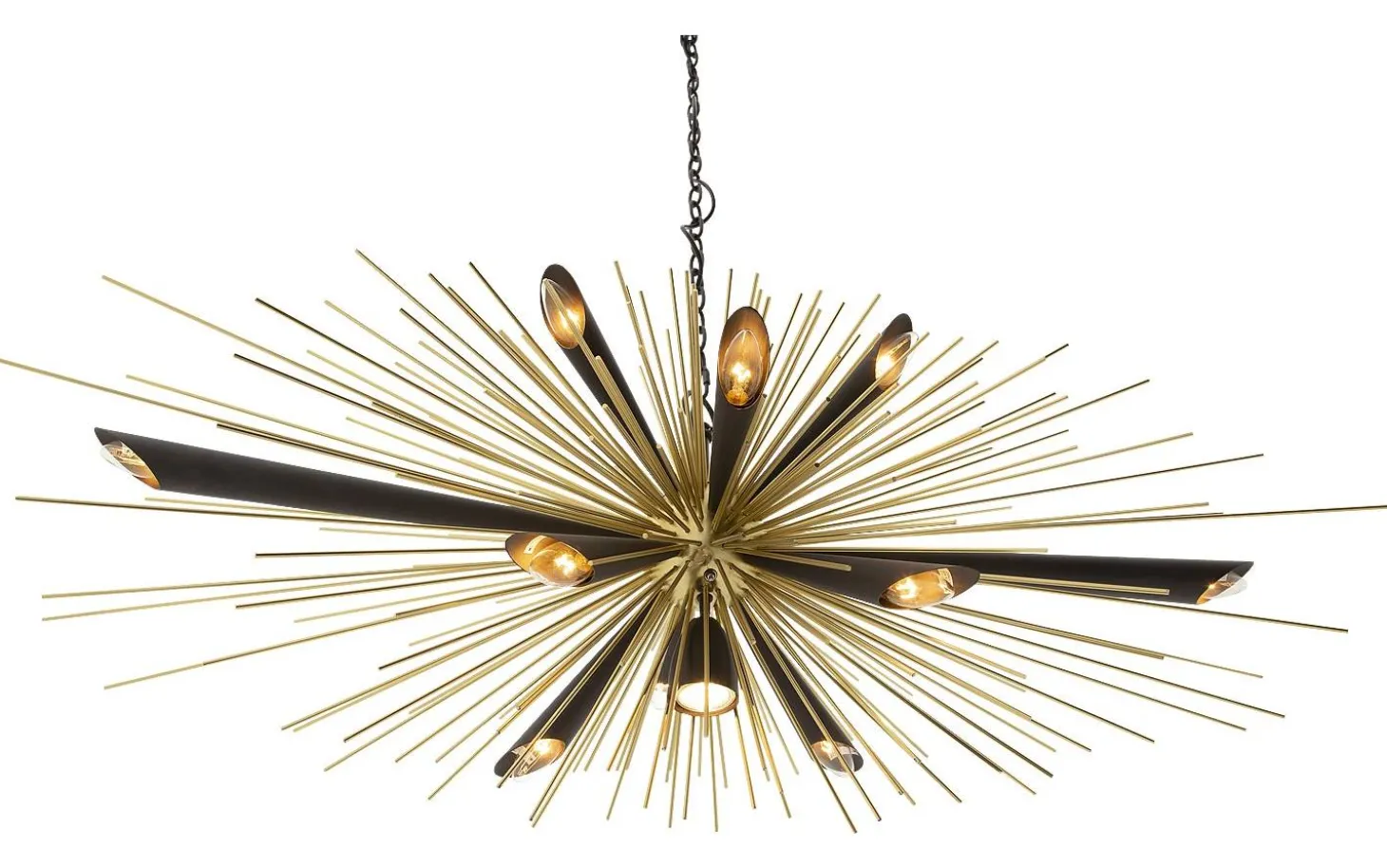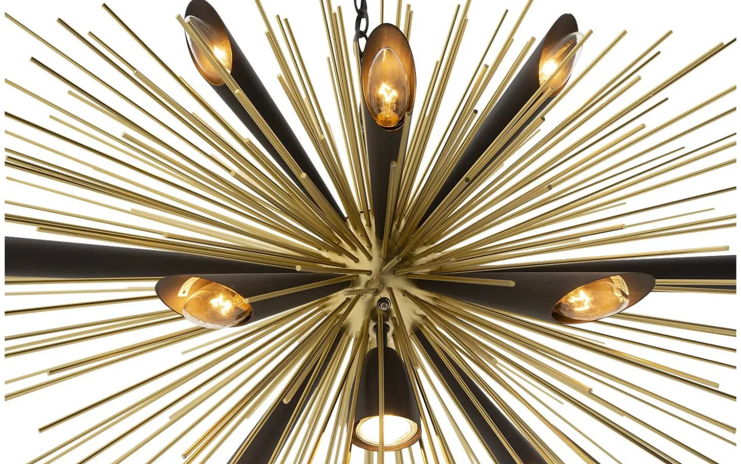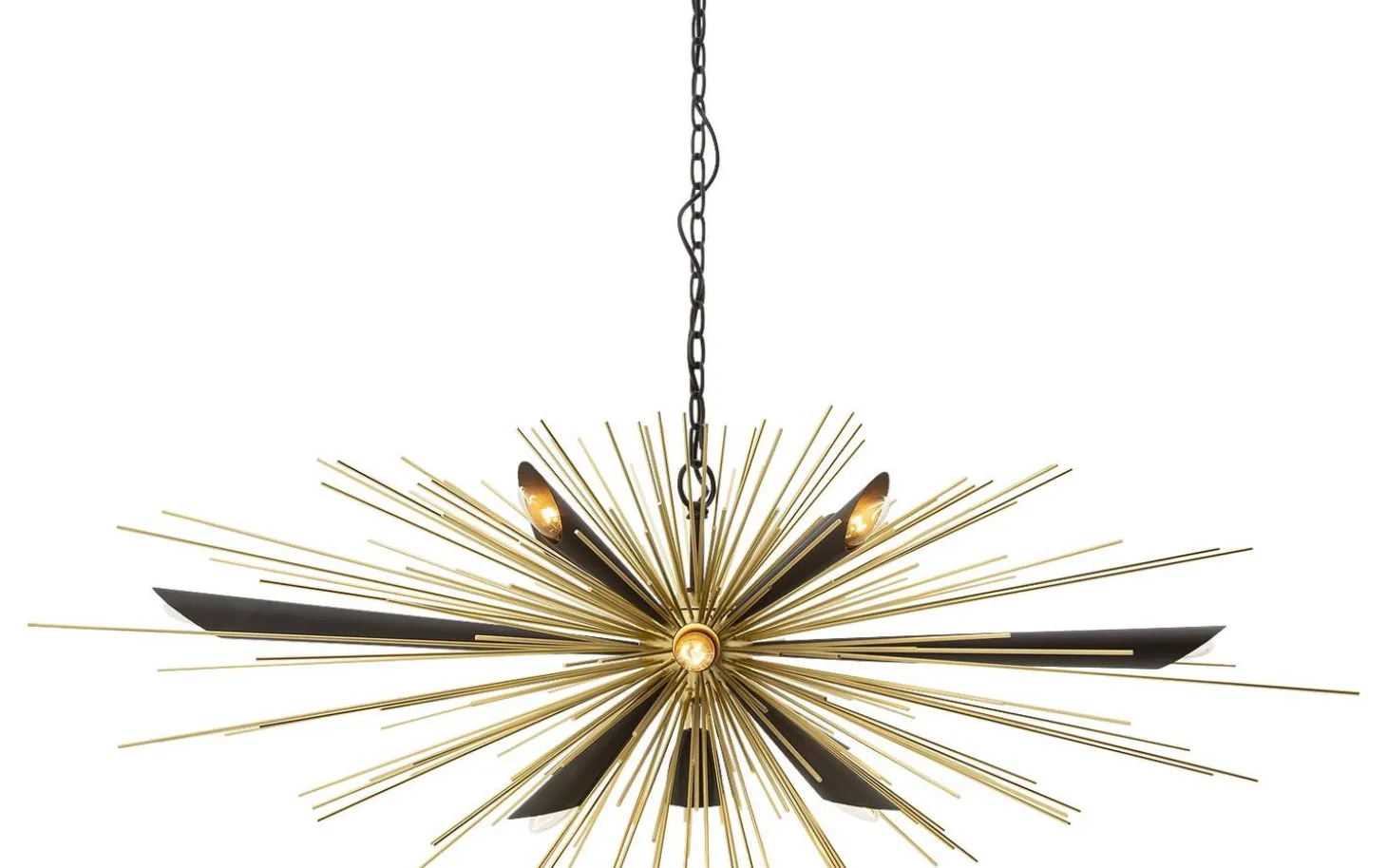Die Hängeleuchte Cadenza ist ein echter Blickfang für die Decke. Bringen Sie sie in Position und bewundern Sie in Ihrem Wohnzimmer jeden Abend ein Feuerwerk. Durch die aufregende Farbkombination aus Schwarz und Gold wirkt die Beleuchtung besonders warm und stimmungsvoll.