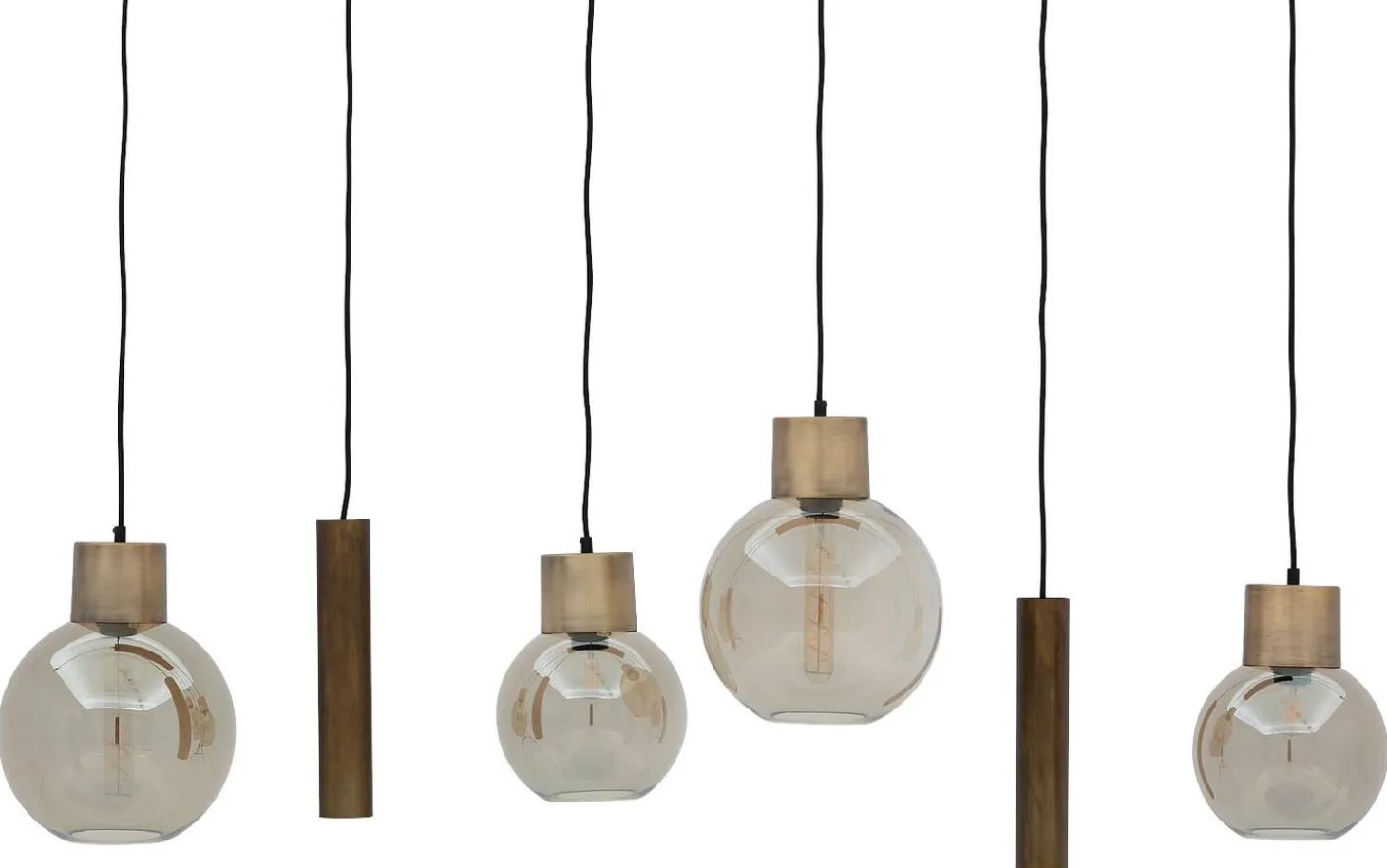 Meet hanglamp Aurora! Voeg een vleugje stijl en sfeer toe aan jouw woon- of eetkamer. Deze hanglamp geeft een chique touch aan je interieur door de combinatie van geborsteld messing en de glazen bollen. Met vijf lichtpunten brengt Aurora niet alleen voldoende licht, maar creëert ook een warme en uitnodigende ambiance voor gezellige diners en kostbare momenten met dierbaren.