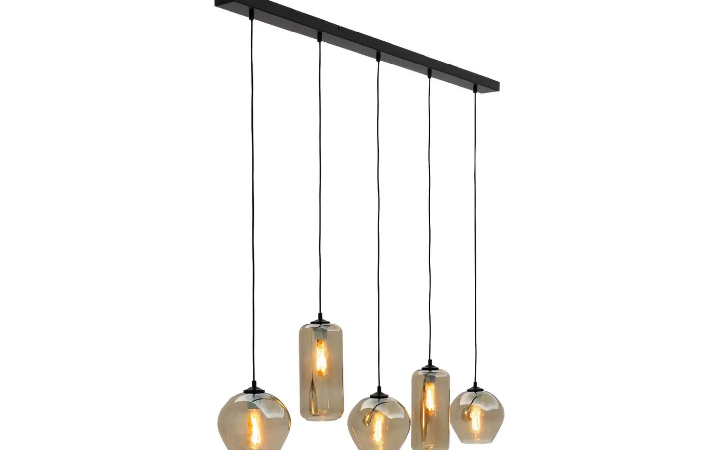 Die Hängeleuchte Devant wird der neue Blickfang in Ihrer Essecke! Die Leuchte aus Rauchglas bringt Wärme in Ihr Esszimmer, und durch die fünf Lichtelemente, die rundherum Licht spenden, ist am ganzen Tisch genügend Licht vorhanden.