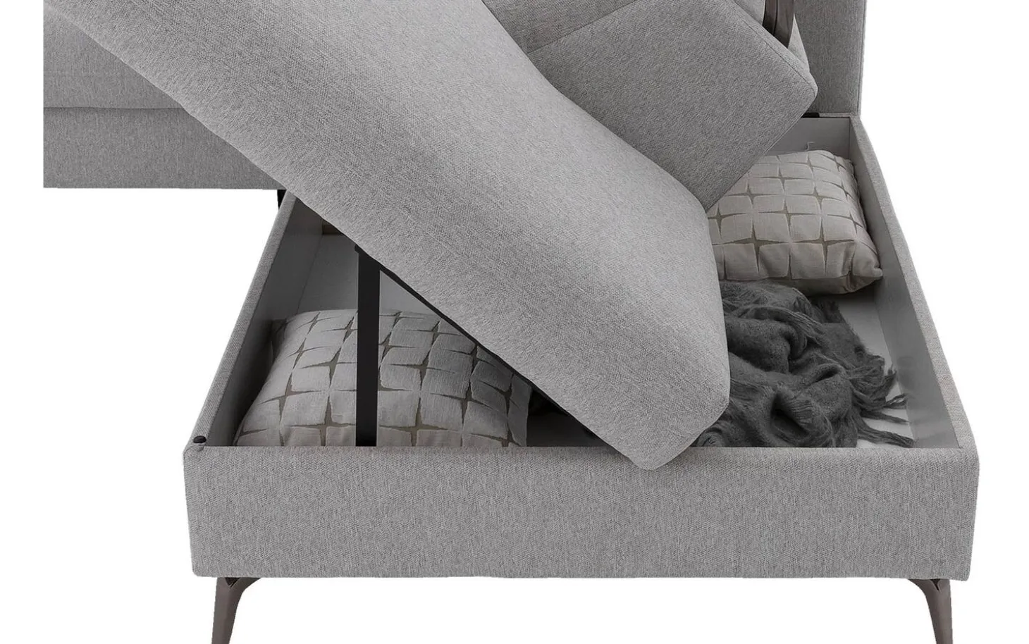 Daarnaast is de bank erg praktisch. Onder het ligelement bevindt zich een opbergruimte, waar je bijvoorbeeld plaids, kussentjes of magazines kunt opbergen. Zo heb je alles binnen handbereik en is het gemakkelijk uit het zicht.