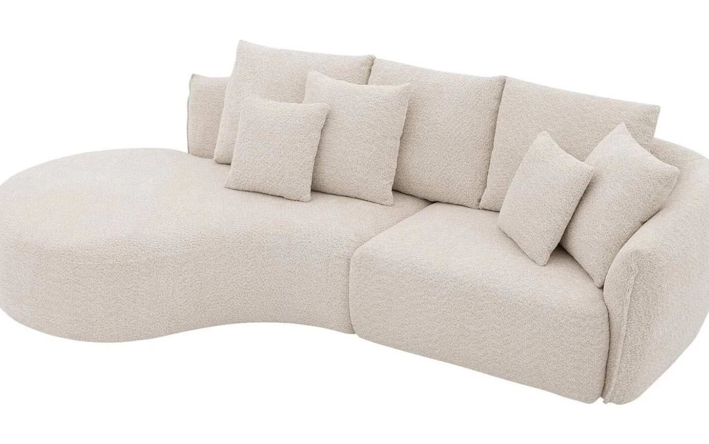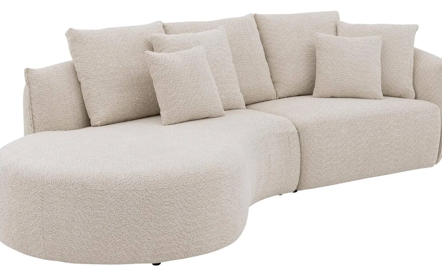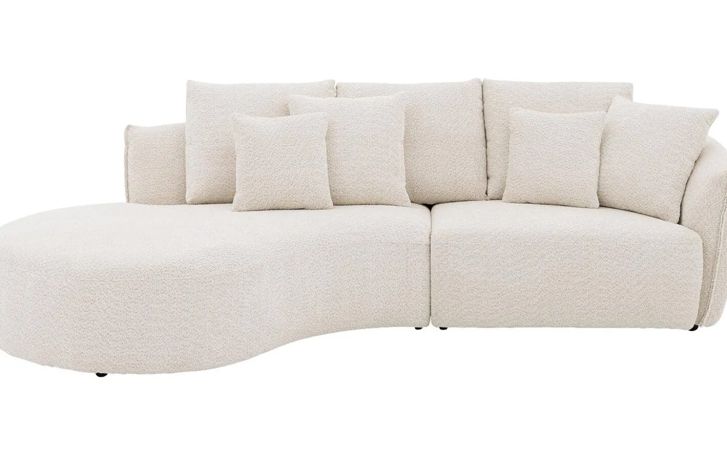 Ontspan op witte hoekbank Fay, een echte blikvanger in jouw interieur! Met zijn kenmerkende ronde vormgeving en zachte bouclé stof combineert deze hoekbank trendy design met heerlijk comfort. Fay bestaat uit een chaise longue links en een 1,5-zits met armleuning rechts, perfect voor gezinnen die ruimte én stijl waarderen. De witte bouclé stof geeft deze bank een warme, knusse uitstraling. Compleet met vier rugkussens en vier sierkussens voor extra ondersteuning en gezelligheid.