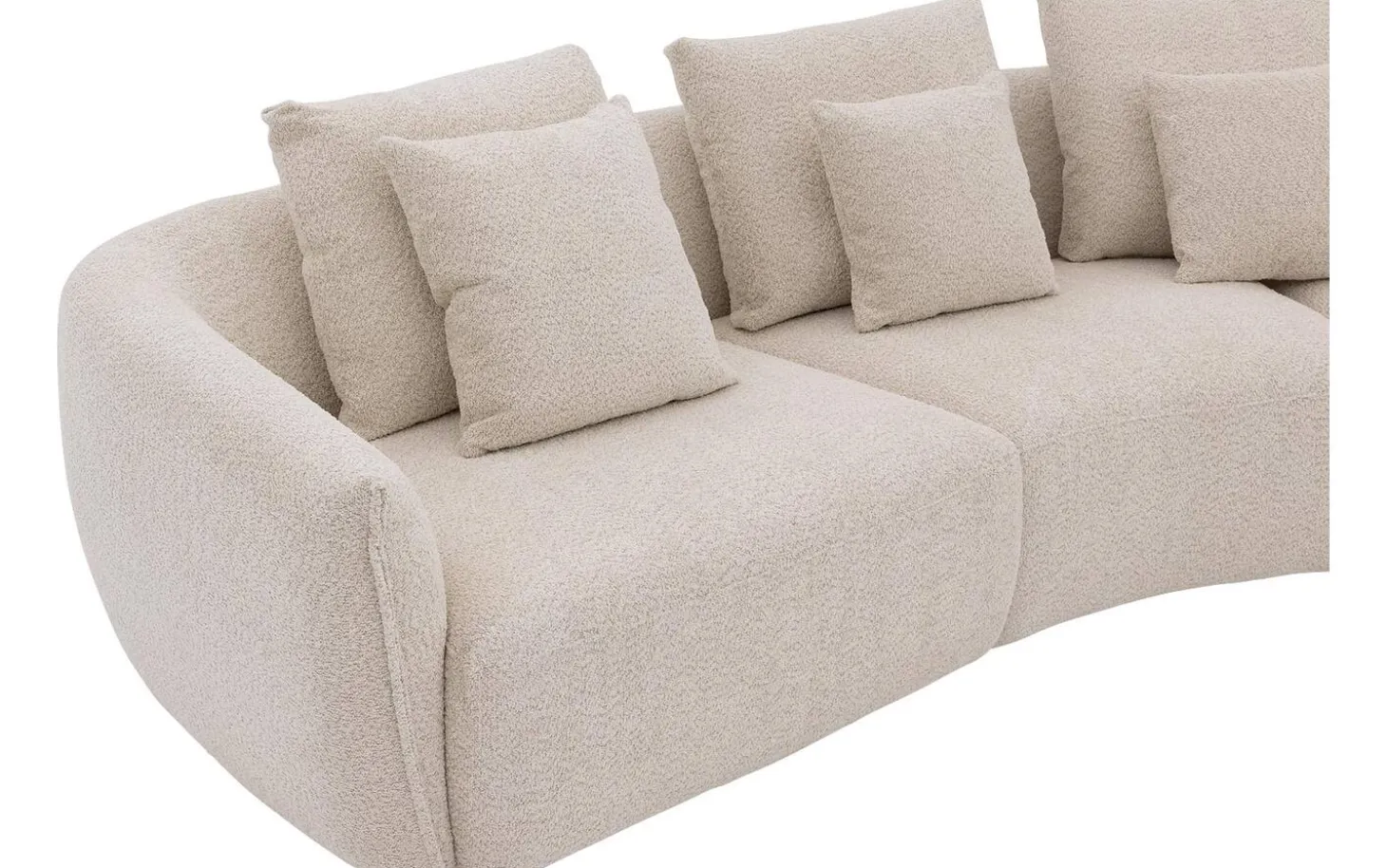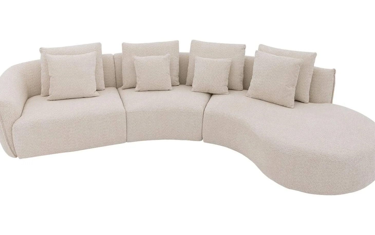 Heerlijk ontspannen met hoekbank Fay! Deze witte hoekbank van zachte bouclé stof is niet alleen een trendy toevoeging aan je interieur, maar ook een bron van ultiem zit- en ligcomfort. Met zijn kenmerkende ronde vormgeving brengt Fay een speelse en moderne sfeer in je woonkamer. Deze hoekbank met chaise longue rechts biedt genoeg ruimte om lekker te loungen. Compleet met vier rugkussens en vier sierkussens, zorgt Fay voor die extra gezelligheid.