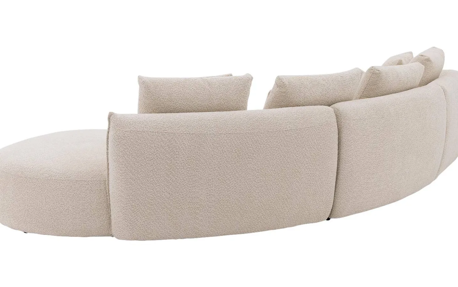 De zachte bouclé stof in crèmewit geeft hoekbank Fay een warme en landelijke uitstraling. De ronde vormgeving maakt deze bank bijzonder en zorgt voor een speels effect in je woonkamer. De kunststof poten in zwart vormen een mooi contrast met de lichte bekleding.