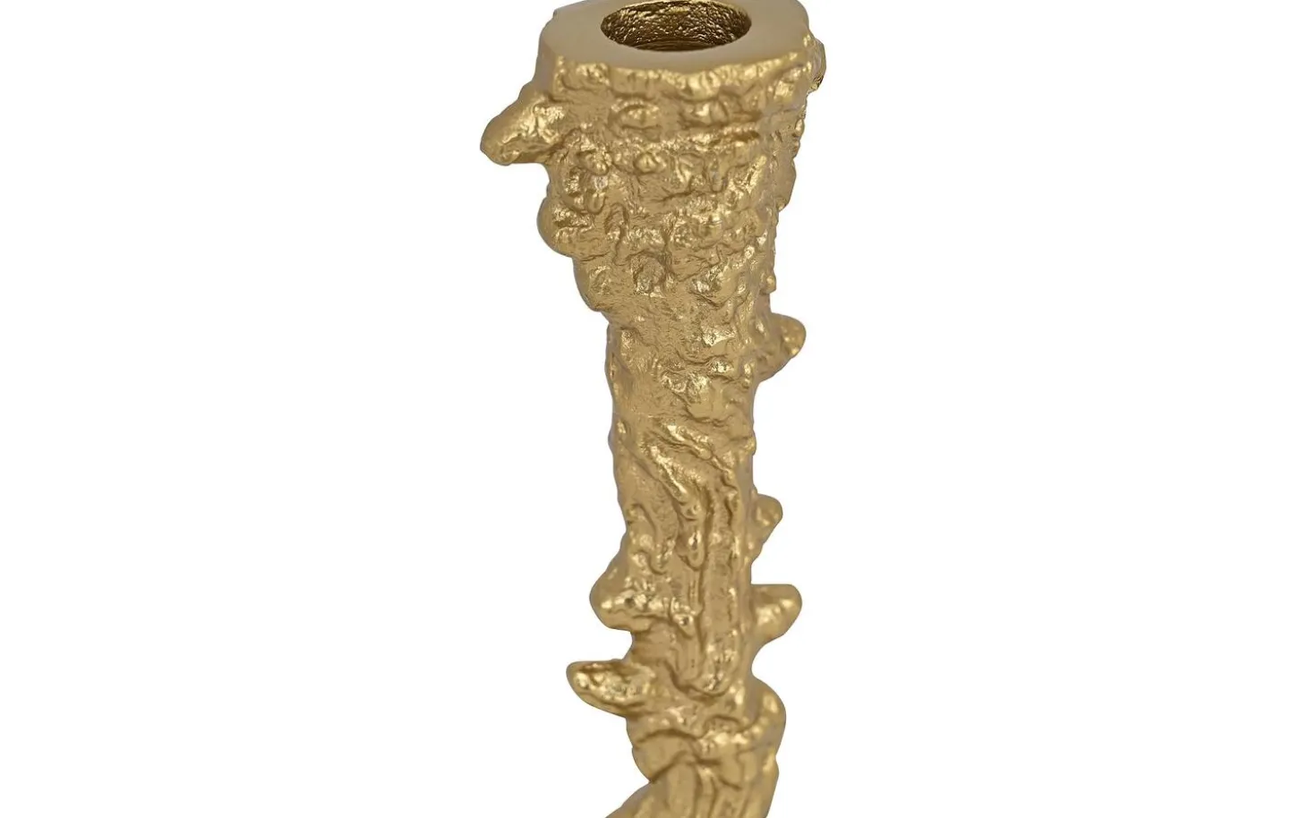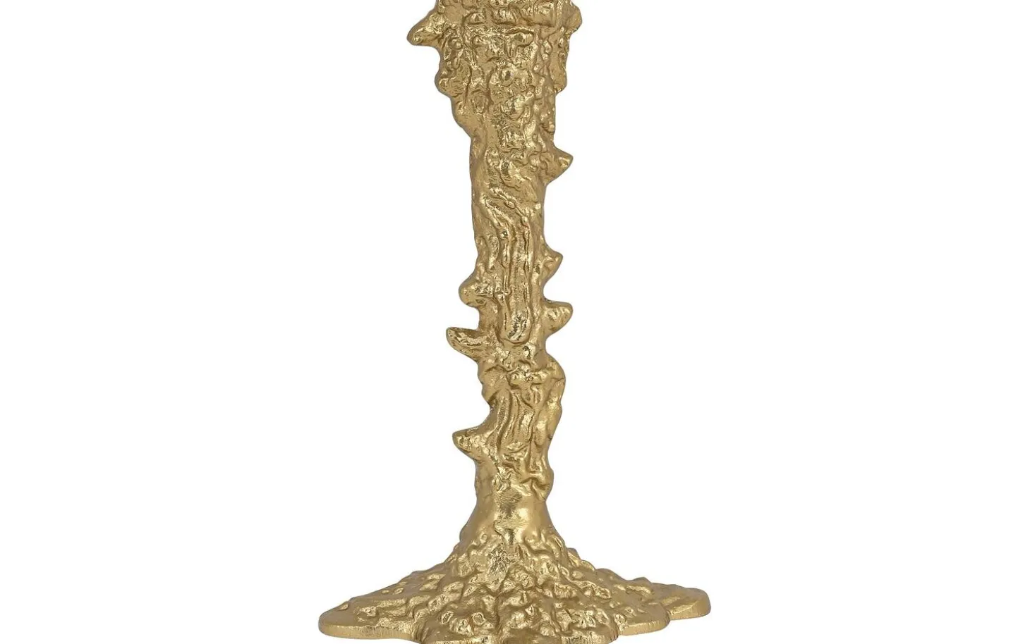 Kerzenhalter Aino ist ein eleganter goldfarbener Kerzenhalter aus Aluminium, der mit seiner dekorativen strukturierten Oberfläche sofort die Aufmerksamkeit auf sich zieht. Mit den Abmessungen von 15 x 25 x 13 cm bildet diese auffällige Wohndekoration einen stilvollen Blickfang auf Ihrem Esstisch, Sideboard oder der Fensterbank. Das warme goldfarbene Finish und die stabile Basis sorgen für eine luxuriöse Ausstrahlung, die perfekt zu sowohl modernen als auch klassischen Einrichtungen passt.
