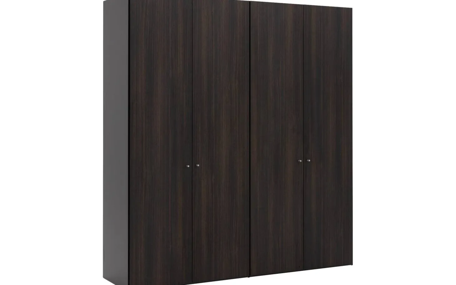 Ontdek kledingkast Ambra, een essentieel item voor elke slaapkamer. De donkerbruine lattenstructuur geeft deze kast een tijdloze uitstraling die naadloos past bij verschillende interieurstijlen. De draaideuren zijn voorzien van een slowmotionsluiting, waardoor ze geruisloos en soepel sluiten. Ambra is verkrijgbaar in verschillende formaten om aan jouw specifieke ruimte te voldoen, of je nu op zoek bent naar een compacte oplossing of een ruime kast voor al jouw kledingbehoeften. Geef jouw slaapkamer een upgrade met Ambra en geniet van een georganiseerde en stijlvolle kledingkast.