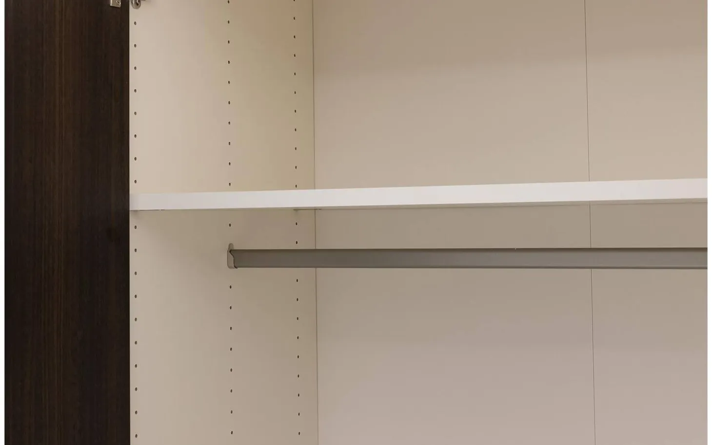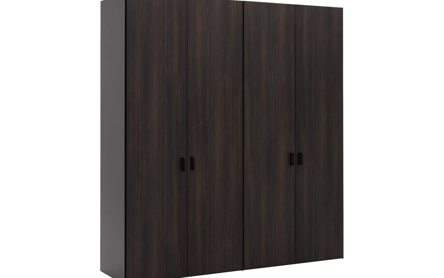 Ontdek kledingkast Ambra, een essentieel item voor elke slaapkamer. De donkerbruine lattenstructuur geeft deze kast een tijdloze uitstraling die naadloos past bij verschillende interieurstijlen. De draaideuren zijn voorzien van een slowmotionsluiting, waardoor ze geruisloos en soepel sluiten. Ambra is verkrijgbaar in verschillende formaten om aan jouw specifieke ruimte te voldoen, of je nu op zoek bent naar een compacte oplossing of een ruime kast voor al jouw kledingbehoeften. Geef jouw slaapkamer een upgrade met Ambra en geniet van een georganiseerde en stijlvolle kledingkast.