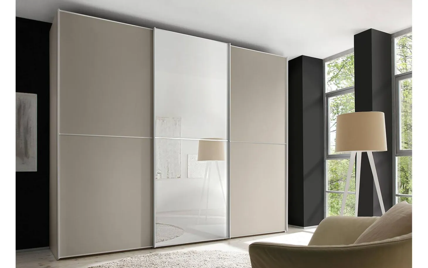 Mit dem Kleiderschrank Big Choice verleihen Sie Ihrem Schlafzimmer ein zeitgemäßes Design. Der Schrank wird standardmäßig mit zwei Einlegeböden und einer Stange pro Fach geliefert. Dank der praktischen Schiebetüren, die sich dank eines Aluminium-Griffs leicht öffnen lassen, haben Sie mehr als genug Platz, um all Ihre Kleidung, Schuhe und Bettwäsche ordentlich und übersichtlich zu verstauen. Besonders schön: Das Schranklayout lässt sich komplett selbst zusammenstellen. Schwebetürenschrank Big Choice gibt es in verschiedenen Varianten, wählen Sie Ihren Favoriten und genießen Sie Top-Qualität für langes Aufbewahrungsvergnügen