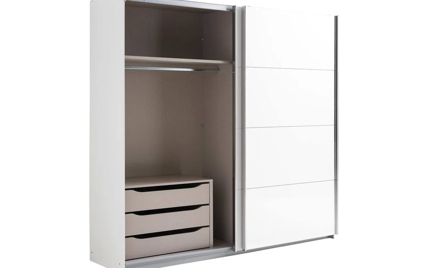 Ben je op zoek naar een strak design en een zee van opbergruimte? Slaapkamerkast Miami is wat je zoekt! De kledingkast is door de strakke vormgeving gemakkelijk te combineren met verschillende woonstijlen. De onvoorstelbaar scherpe prijs-kwaliteitverhouding zorgt voor de perfecte match. De kledingkast is voorzien van twee grote schuifdeuren in de door jou gekozen kleur. Je kunt ook kiezen voor spiegeldeuren, waardoor kledingkast Miami nóg praktischer wordt. De kast heeft standaard twee roedes en twee legplanken.