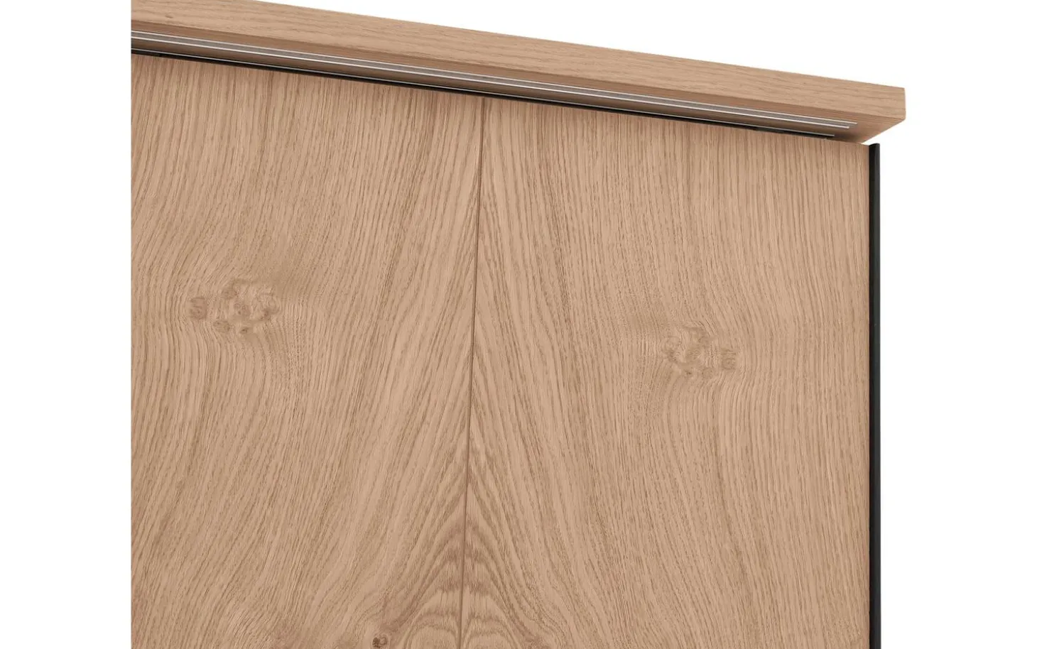 Ben je op zoek naar een kledingkast waar je jarenlang plezier van hebt? Kies dan voor kledingkast Wood! De kast heeft een tijdloze en natuurlijke uitstraling met een stoer randje. De zwarte details van de schuifdeuren zorgen voor een stijlvolle afwerking en het duurzame eikenhout geeft extra warmte aan jouw slaapkamer.
