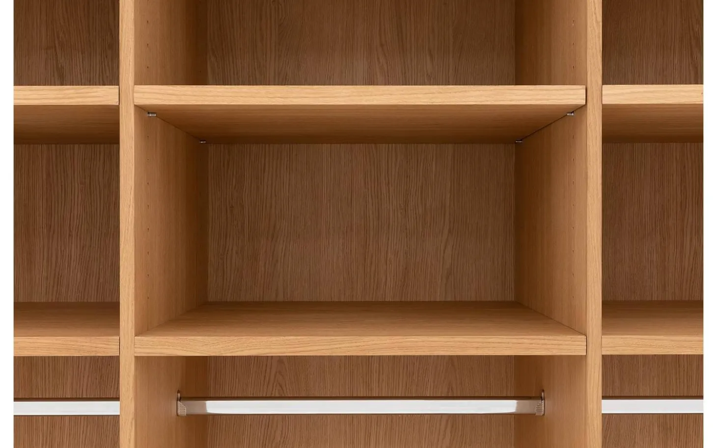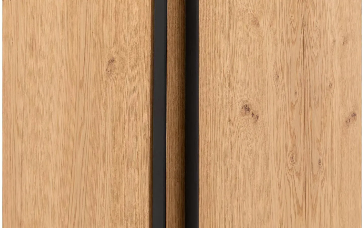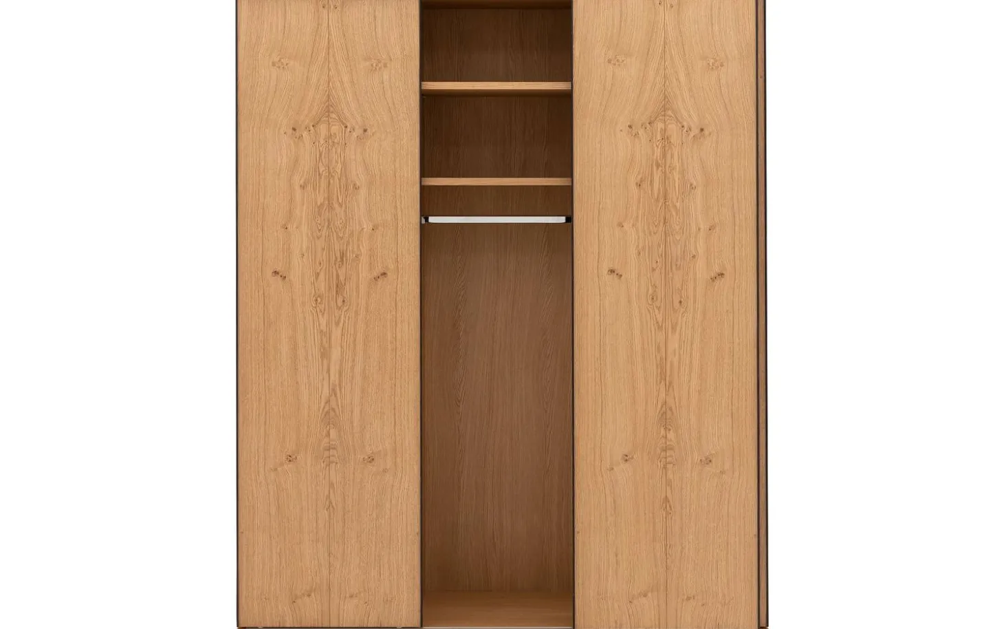 De ombouw van kledingkast Wood is van massief eiken panelen. De deuren zijn voorzien van eiken fineer.