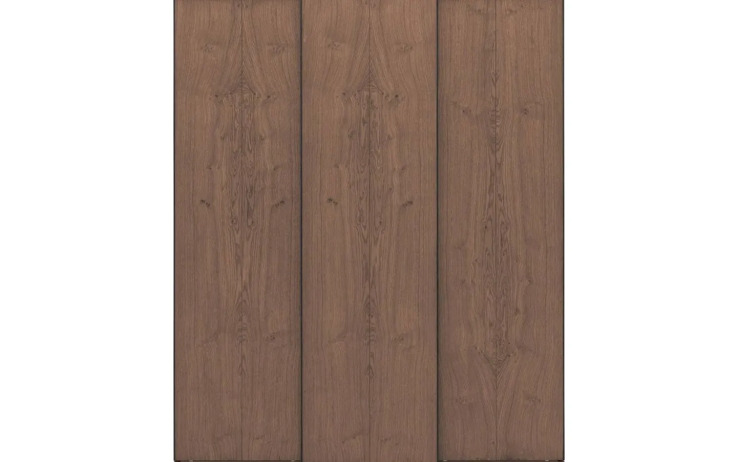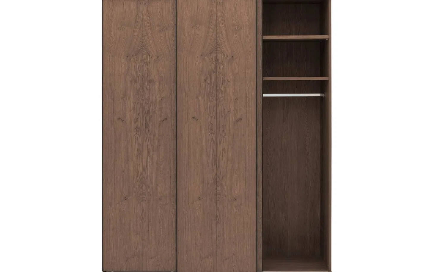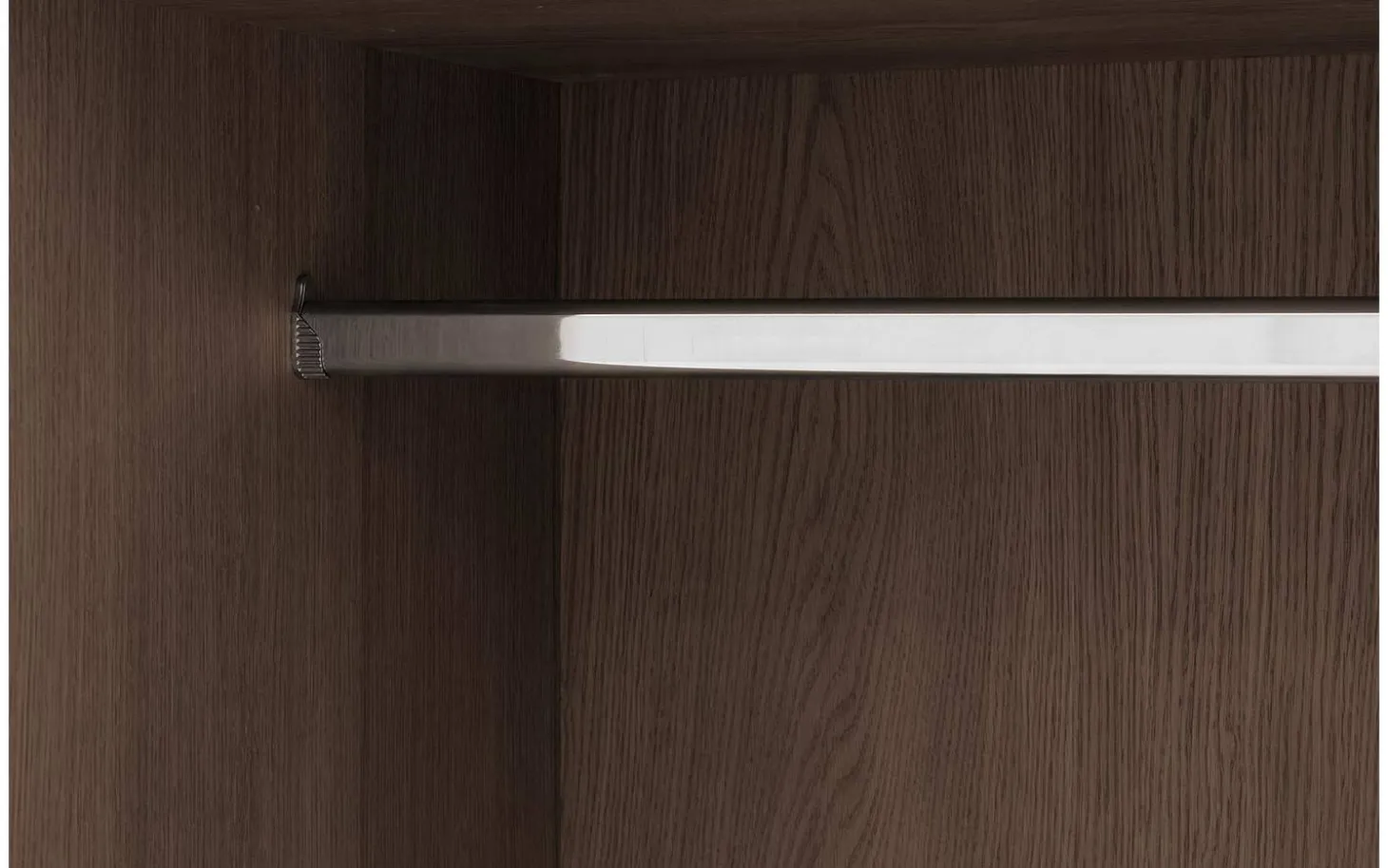 De ombouw van kledingkast Wood is van massief eiken panelen. De deuren zijn voorzien van eiken fineer.