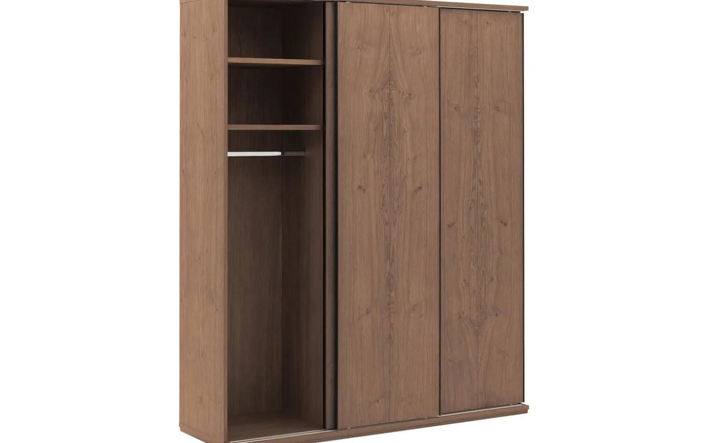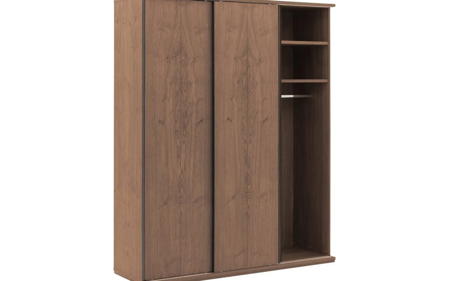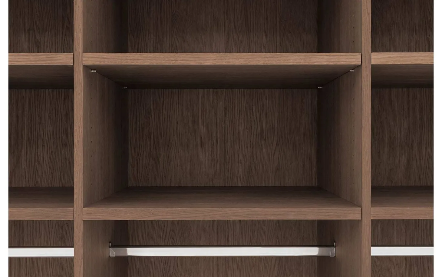 Dankzij de schuifdeuren is kledingkast Wood praktisch in gebruik. De deuren nemen minder ruimte in beslag, omdat de kastdeur de ruimte niet indraait. Bovendien zorgt het voor een strak design van de kledingkast. Vraag je je af of de kast voldoende opbergruimte heeft? Daar hoef je je geen zorgen om te maken! Ieder kastgedeelte (compartiment) heeft een roede en twee legplanken, zo beschik je over meer dan genoeg opbergruimte voor al je kleding. Wil je toch nog meer opbergruimte creëren in je kast? Je kunt speciaal voor kledingkast Wood extra legplanken of een inzetladeblok bijbestellen.