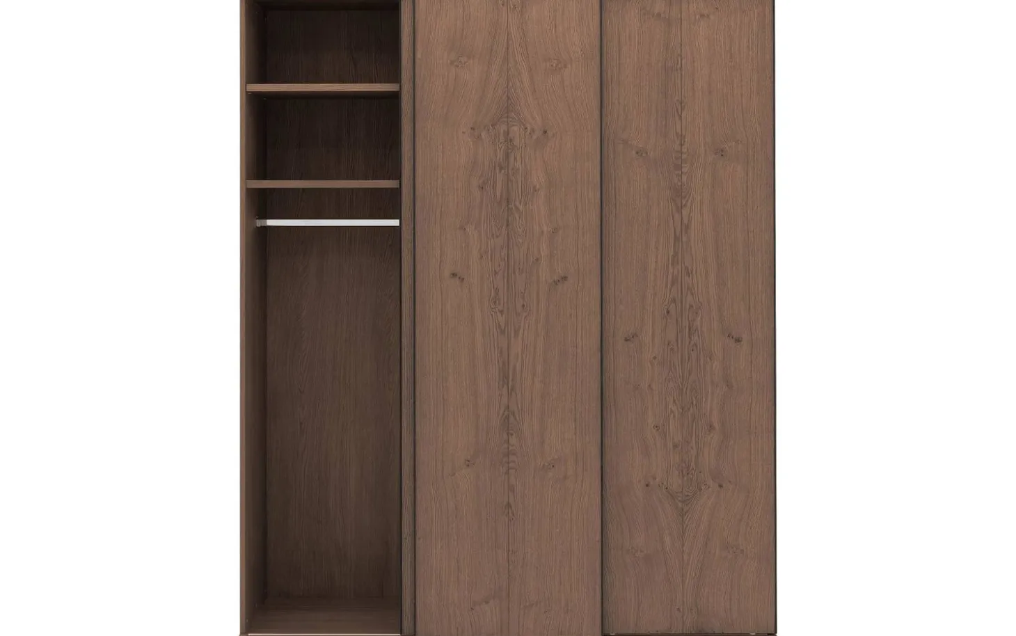 Ben je op zoek naar een kledingkast waar je jarenlang plezier van hebt? Kies dan voor kledingkast Wood! De kast heeft een tijdloze en natuurlijke uitstraling met een stoer randje. De zwarte details van de schuifdeuren zorgen voor een stijlvolle afwerking en het duurzame eikenhout geeft extra warmte aan jouw slaapkamer.