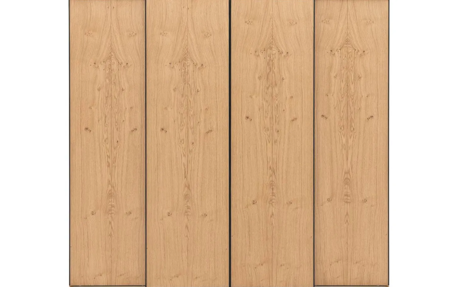 Ben je op zoek naar een kledingkast waar je jarenlang plezier van hebt? Kies dan voor kledingkast Wood! De kast heeft een tijdloze en natuurlijke uitstraling met een stoer randje. De zwarte details van de schuifdeuren zorgen voor een stijlvolle afwerking en het duurzame eikenhout geeft extra warmte aan jouw slaapkamer.