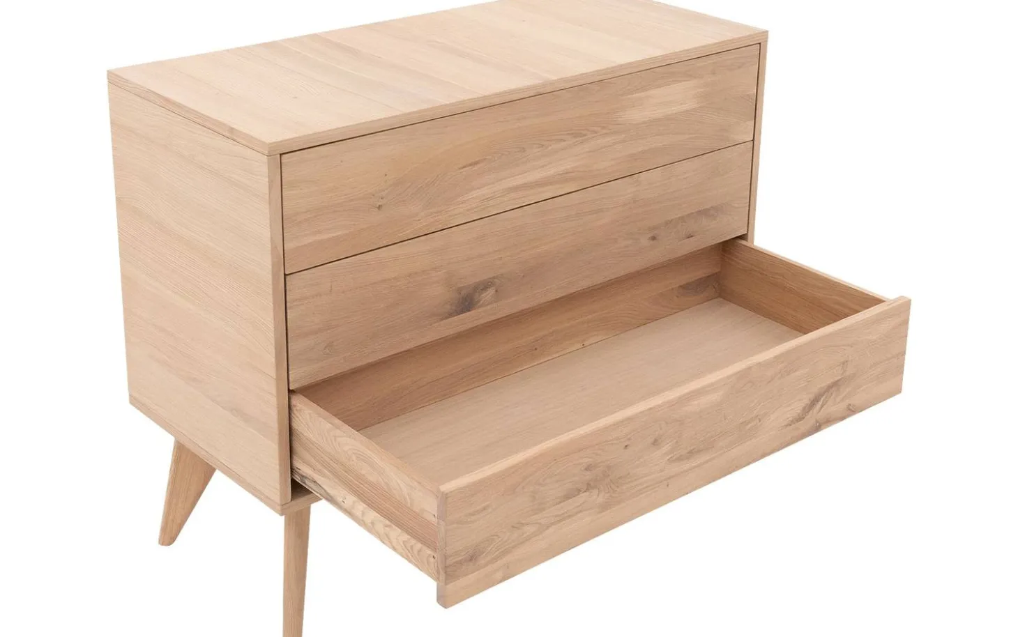 Waan je in botanische sferen met ladekast Cosima in jouw slaapkamer. De warme, natuurlijke uitstraling heeft Cosima te danken aan het eikenhout. Daarnaast maken de rond afgewerkte poten de kast uniek en zorgen voor een rustige uitstraling. Dankzij het duurzame hout gaat de ladekast jarenlang mee. De kast is voorzien van drie lades met handig push to open systeem. Hierdoor heb jij meer dan genoeg ruimte om al jouw spullen op te bergen. Boven de ladekast is ruimte voor het plaatsen van jouw mooiste accessoires.