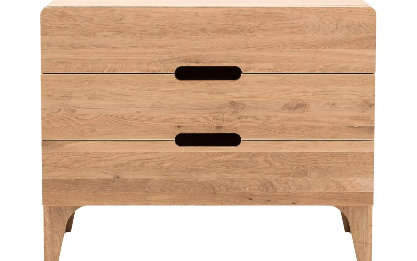 Curve ist eine Kommode mit unverwechselbarem Charakter. Die Kommode mit 3 Schubladen wird mit größter Sorgfalt aus langlebigem Eichenholz gefertigt. Die einzigartigen runden Formen sind ein Beweis großartigen fachmännischen Könnens. Die Schubladen des Schränkchens sind außerdem mit einem Soft-Closing-System ausgestattet. Dieses System gewährleistet ein leichtes und geräuschloses Schließen der Schubladen. Schaffen Sie jetzt die perfekte gemütliche Atmosphäre in Ihrem Schlafzimmer und kombinieren Sie die Kommode Curve mit anderen Möbelstücken aus der Serie Curve.