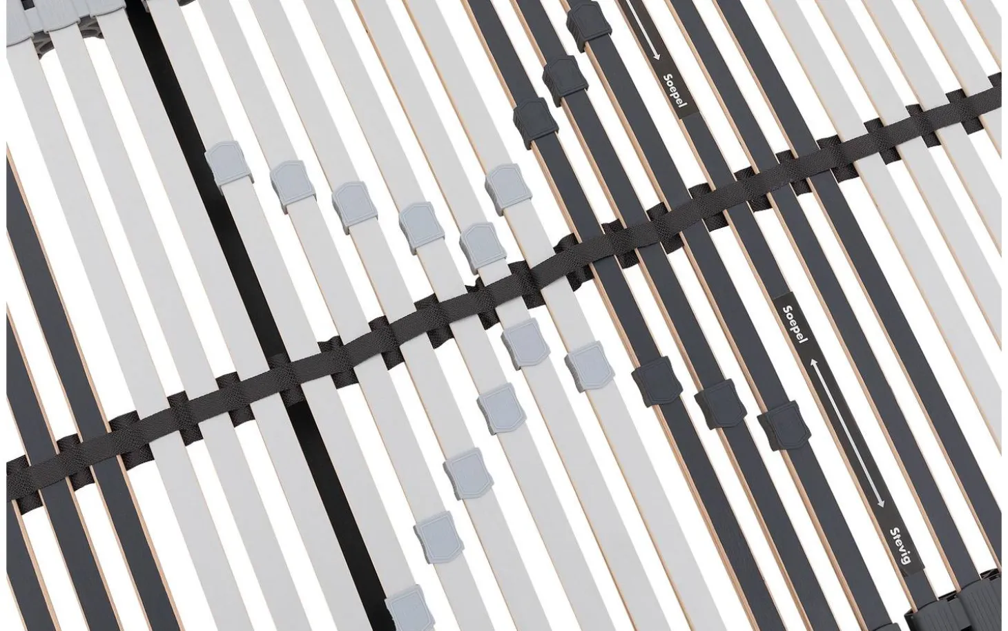 Ein guter Lattenrost trägt zu einem guten Schlaf bei. Lattenrost Luxe manuell verstellbar sorgt dafür, dass Ihr Körper dank des Unterbaus mit nicht weniger als 42 Latten während der Nacht optimal gestützt wird. Genießen Sie mit Luxe gewährleistet eine optimale Unterstützung Ihres Körpers. Dank der robusten Konstruktion mit Mittelgurt wird ein Durchbiegen der 42 Latten verhindert. Genießen Sie eine drucksenkende Funktion im Schulterbereich und einen verstellbaren Hüftbereich, wobei die Stabilität des Lattenrostes angepasst werden kann, um mehr Halt oder eine zusätzliche Druckentlastung zu bieten. Lesen Sie entspannt im Bett ein Buch oder sehen Sie sich Ihre Lieblingsserie an.