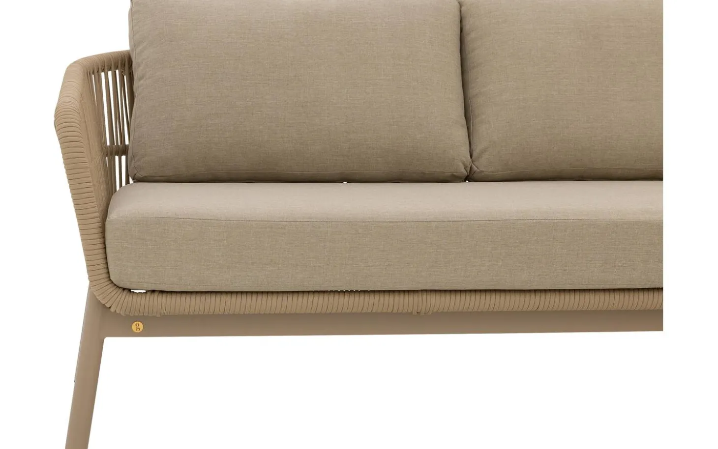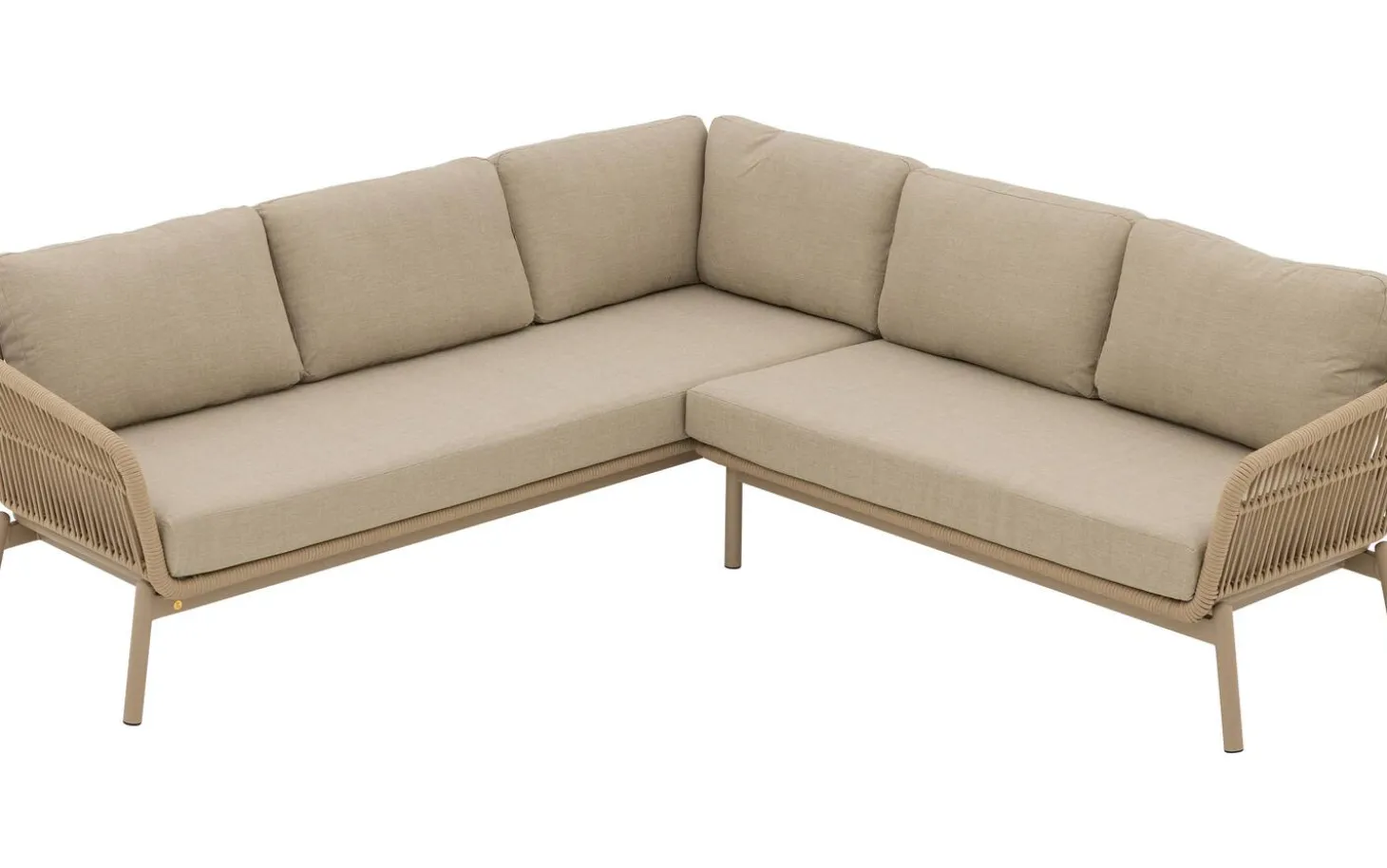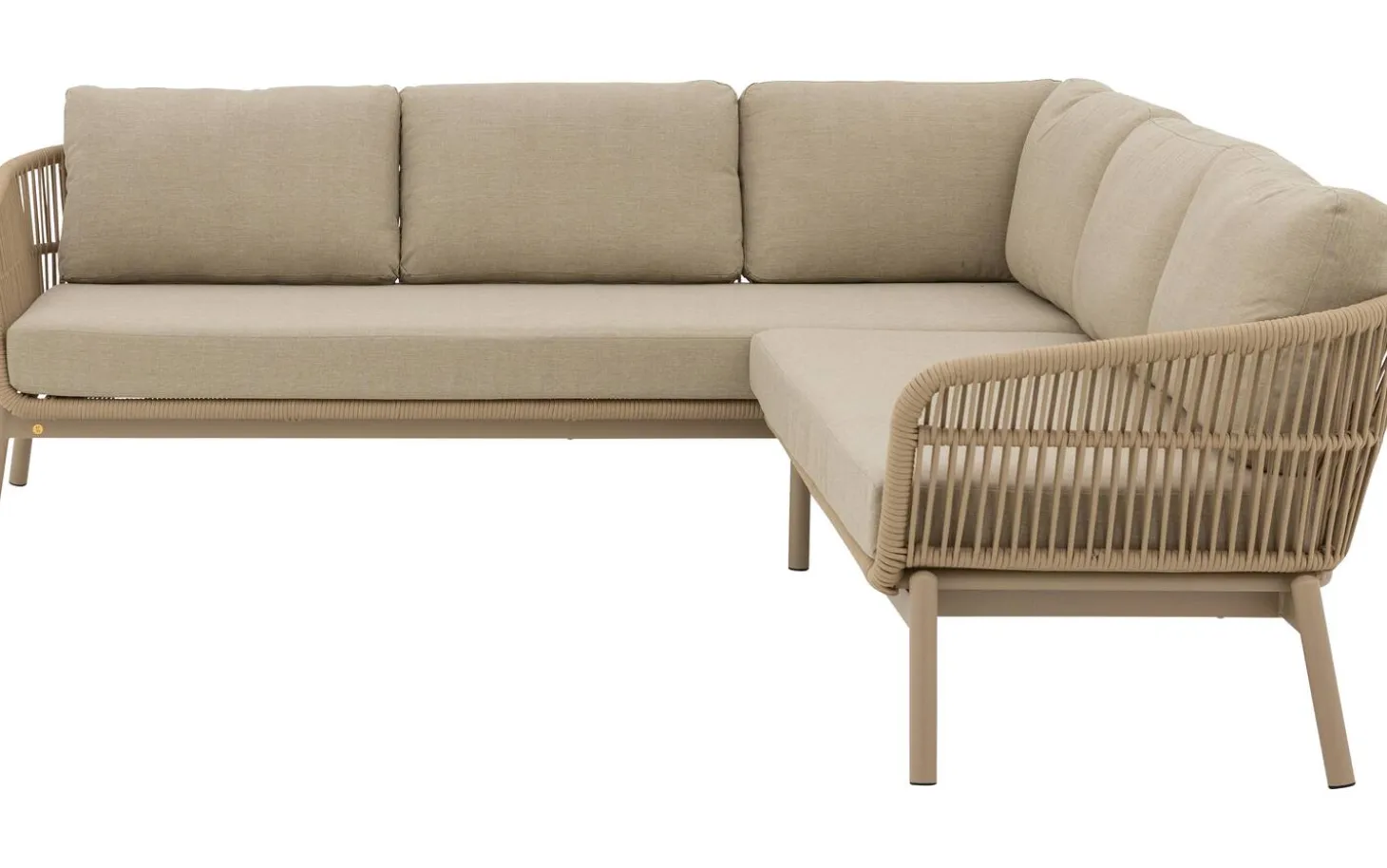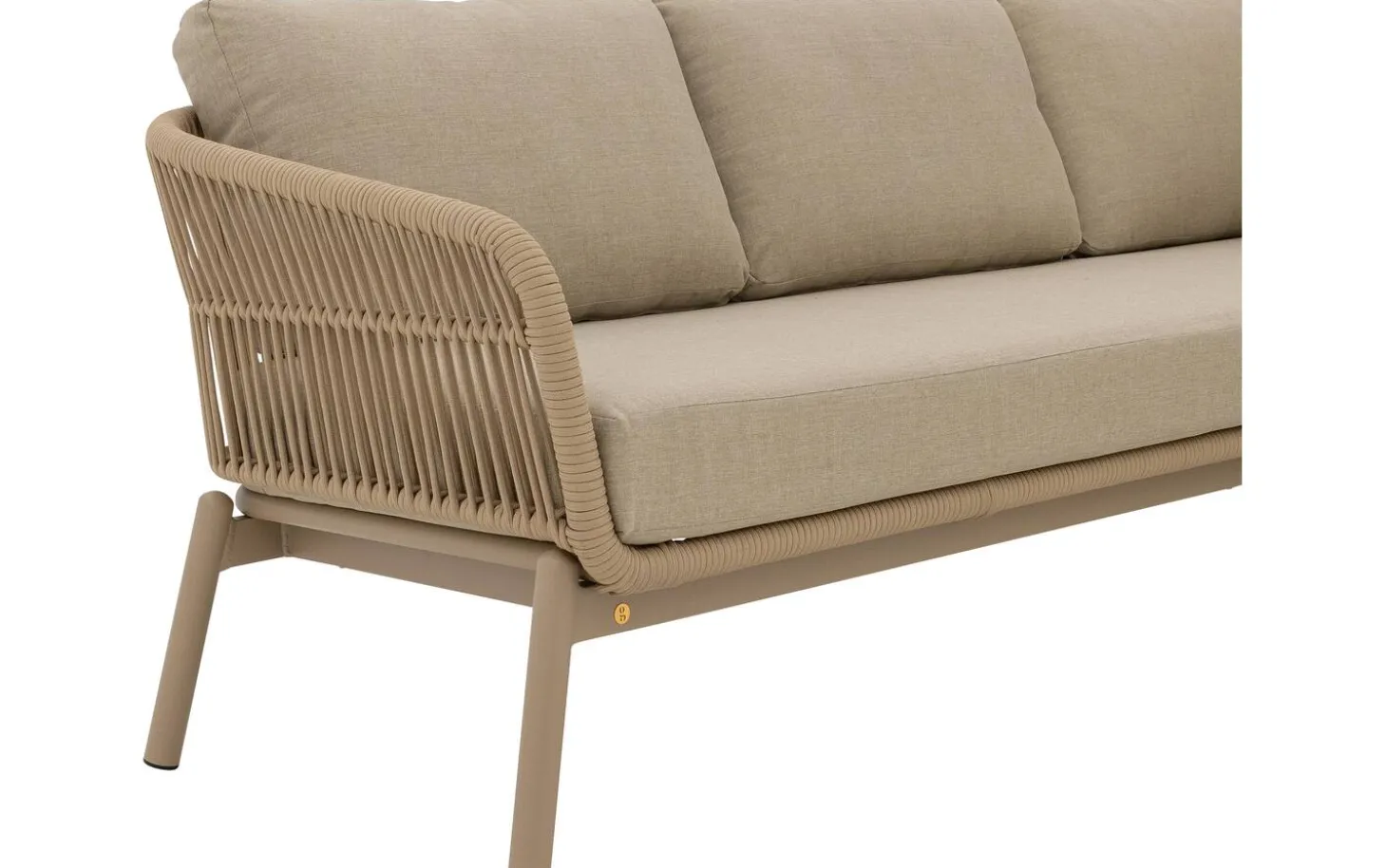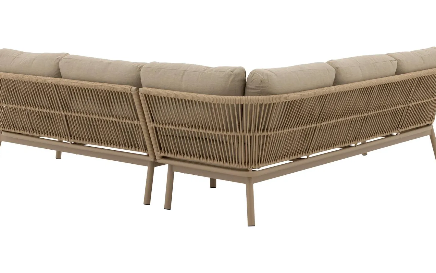 Bruine loungeset Sorrento met zachte kussens brengt die fijne ontspannen sfeer naar je tuin of terras. De warme zandkleur geeft je buitenruimte meteen een natuurlijke, uitnodigende uitstraling. Dankzij de stevige aluminium constructie met poedercoating is deze set bestand tegen wisselend weer. Ideaal voor lange zomeravonden of een ontspannen middag buiten.