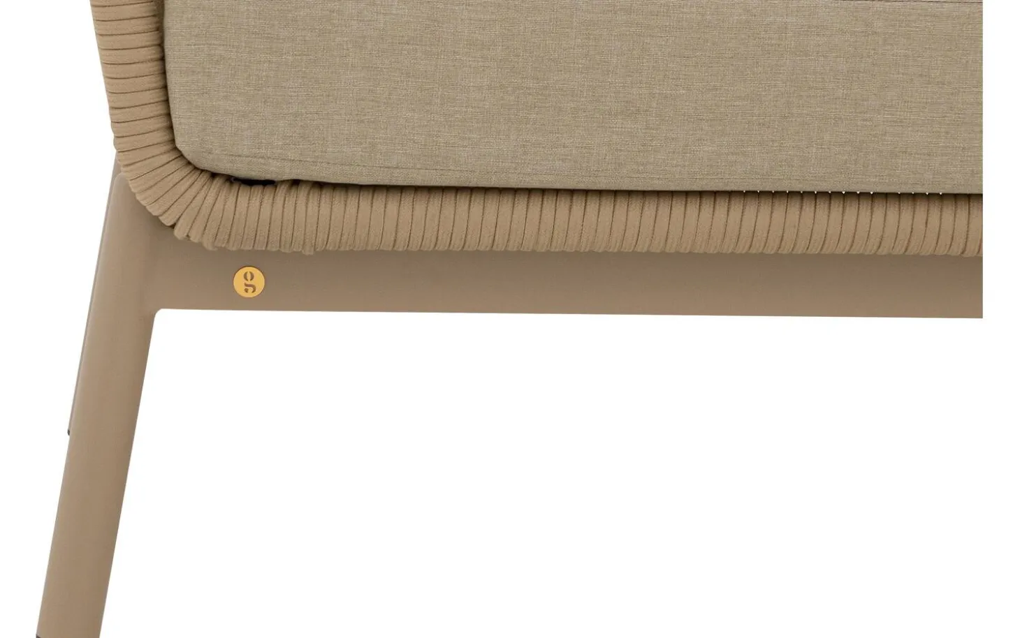 Het aluminium frame met poedercoating in zandkleur geeft de loungeset een strakke en moderne look. De 100% olefin stoffering is een stevige buitenstof die kleurecht blijft. Het materiaal droogt snel en is eenvoudig schoon te houden.