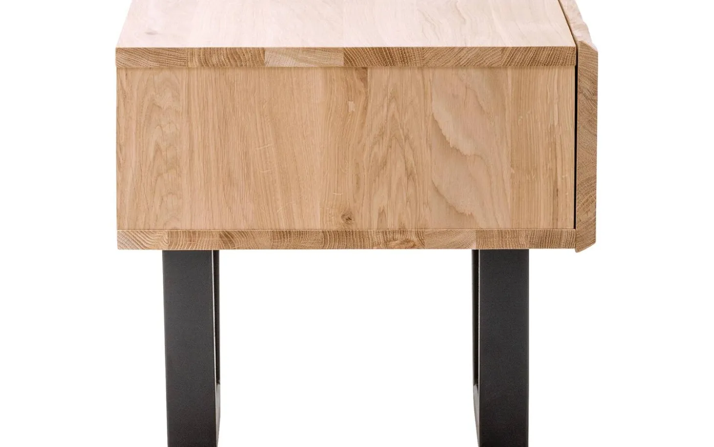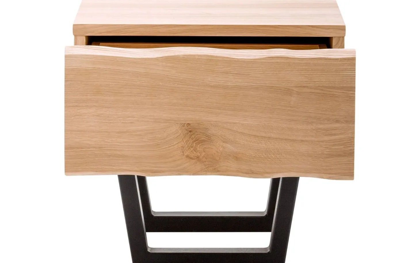 Nachtkastje Slade is een ware blikvanger in jouw slaapkamer dankzij het unieke design. Dankzij het massieve eikenhout en de iets ruigere afwerking van de lade heeft het nachtkastje een natuurlijke look. Het zwart metalen onderstel geeft het nachtkastje een open en tegelijk stoere uitstraling. Hierdoor past Slade zowel in een landelijke als een industriële slaapkamer. Het duurzame eikenhout zorgt ervoor dat Slade stevig is waardoor je lang plezier hebt van het nachtkastje. Dankzij de lade, voorzien van een handig push to open systeem, is er genoeg plaats voor spullen die je graag dicht bij je hebt, zoals je favoriete boek of een fijne handcrème. Match nachtkastje Slade met het bed uit dezelfde serie voor een complete natuurlijke sfeer in jouw slaapkamer.