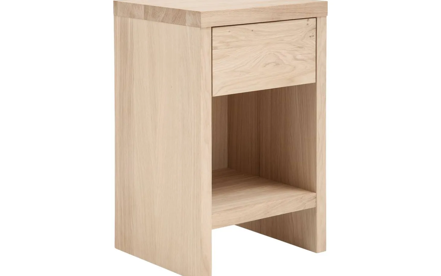 Das Nachtschränkchen Edition ist eine Bereicherung für Ihr Schlafzimmer. Edition ist aus ansprechendem unbehandeltem Eichenholz gefertigt, das für seine Maserung und Farbschattierungen bekannt ist. Dies verleiht Ihrem Schlafzimmer eine natürliche und warme Optik. Dank dieser Optik integriert sich Edition in jedes Schlafzimmer. Das Nachtschränkchen verfügt über eine Schublade und ein offenes Fach und bietet somit ausreichend Stauraum für all Ihre persönlichen Gegenstände.