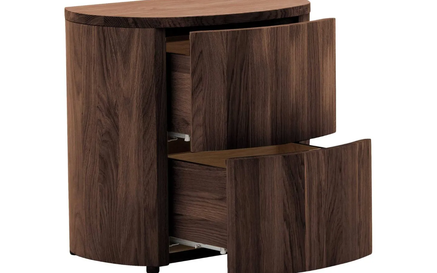 Das Nachtschränkchen Donna zeichnet sich durch seine ansprechenden runden Formen aus. Die Kombination dieses Designs mit robustem Eichenholz verleiht diesem Nachtschränkchen eine schlanke, aber dennoch solide Optik. Das moderne Modell ist aus massivem Eichenholz gefertigt und besticht durch sein warmes, natürliches Flair, das sich in jedes Schlafzimmer integrieren lässt. Dank des Eichenholzes hat dieses Nachtschränkchen zudem eine lange Lebensdauer. Das Nachtschränkchen ist mit einer passenden Kommode und einem passenden Bett aus der Donna-Kollektion kombinierbar.