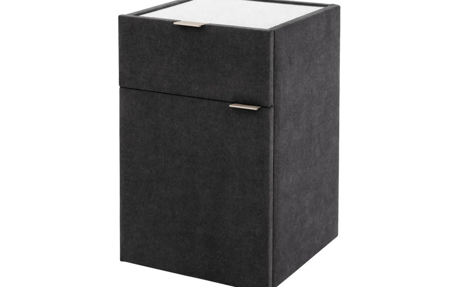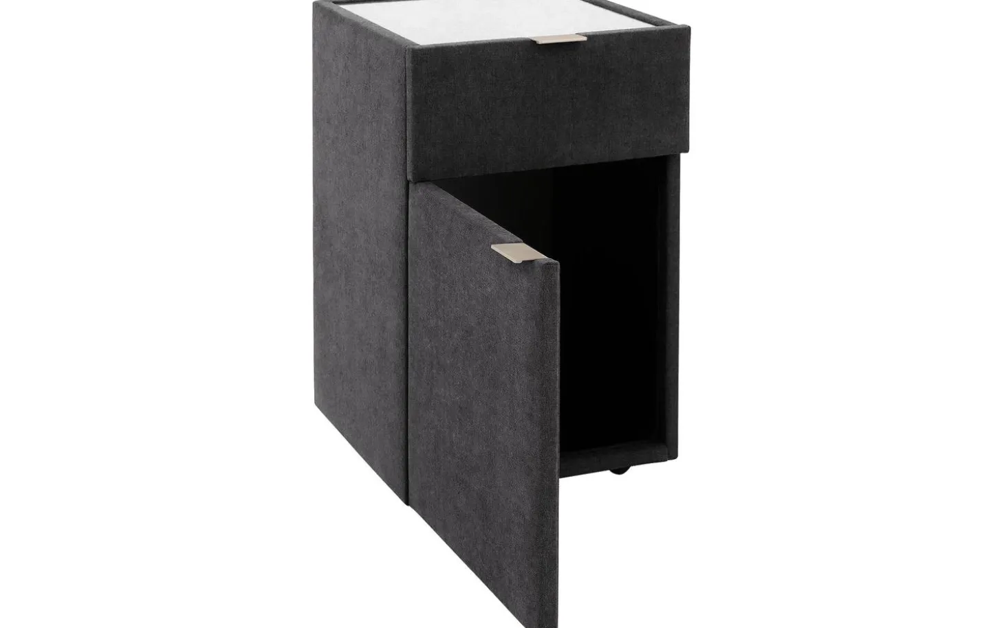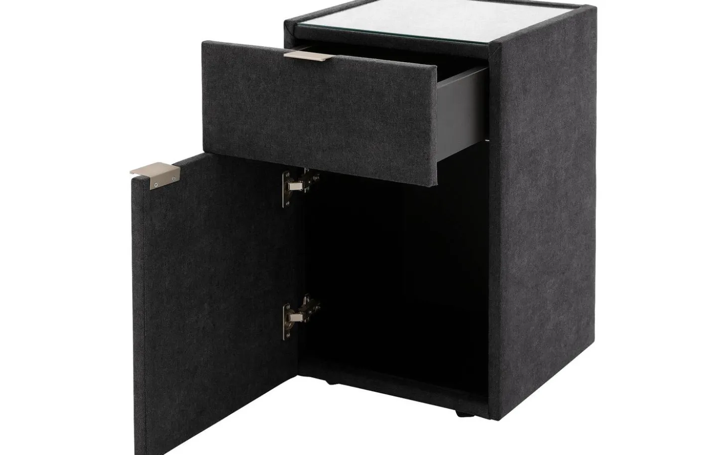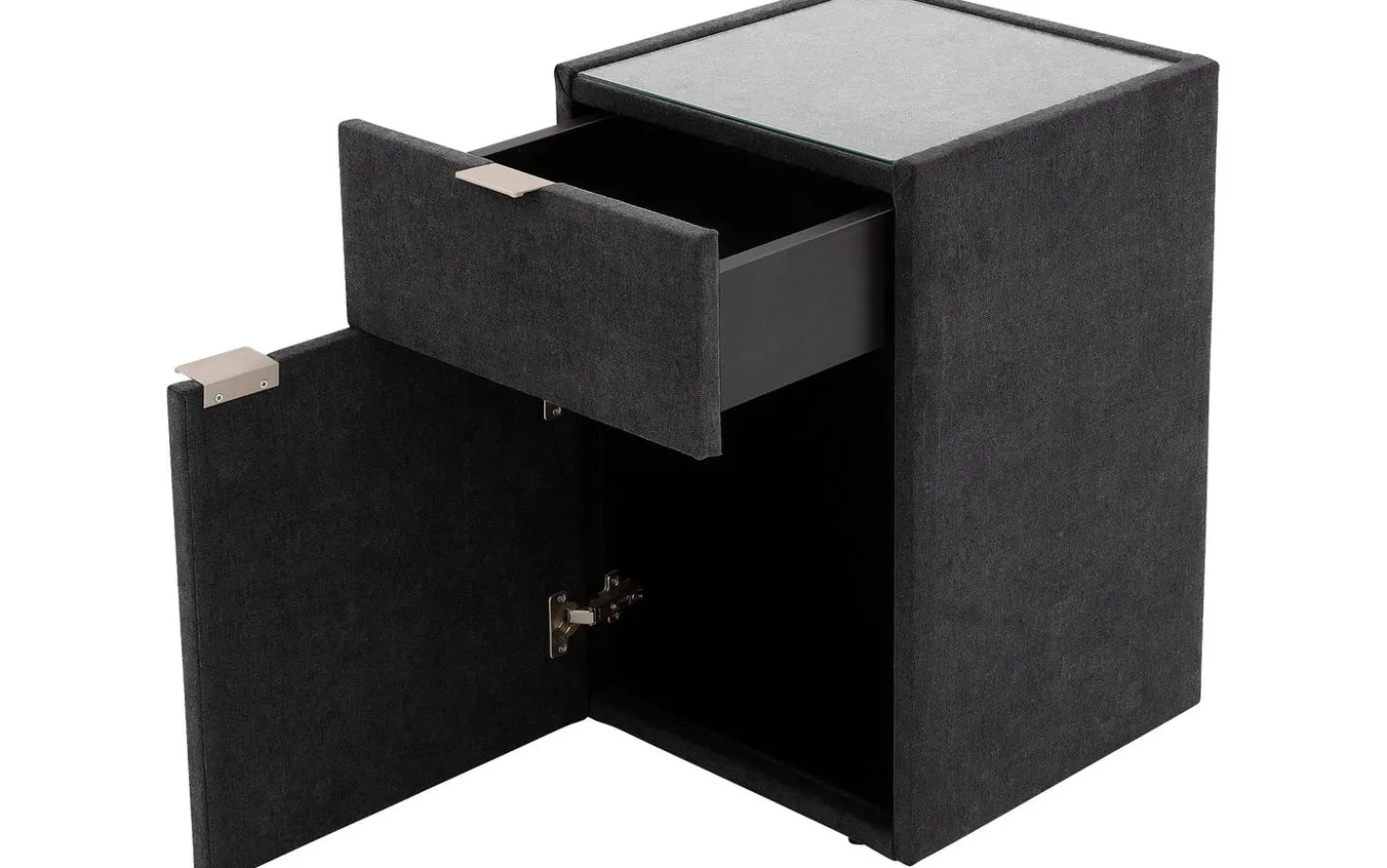 Mit dem Nachtschränkchen Briljant Luxe bringen Sie Stil und modernes Design in Ihr Schlafzimmer. Durch den Stoffbezug in Kombination mit der Oberplatte aus Glas ist dieses Nachtschränkchen ein echter Blickfang. Die Oberplatte aus Glas dient dem Nachtschränkchen nicht nur als Schutz, sondern sorgt auch für zusätzliche Stabilität für Gegenstände, die auf dem Nachtschränkchen abgestellt werden. Das Nachtschränkchen Briljant Luxe ist mit einer Schublade und einer Flügeltür versehen, was eine Vielzahl von Aufbewahrungsmöglichkeiten bietet. Ideal für all Ihre persönlichen Gegenstände! Schaffen Sie ein ansprechendes Gesamtbild, indem Sie das Nachtschränkchen Brilliant Luxe mit dem Boxspringbett Brilliant Luxe kombinieren.