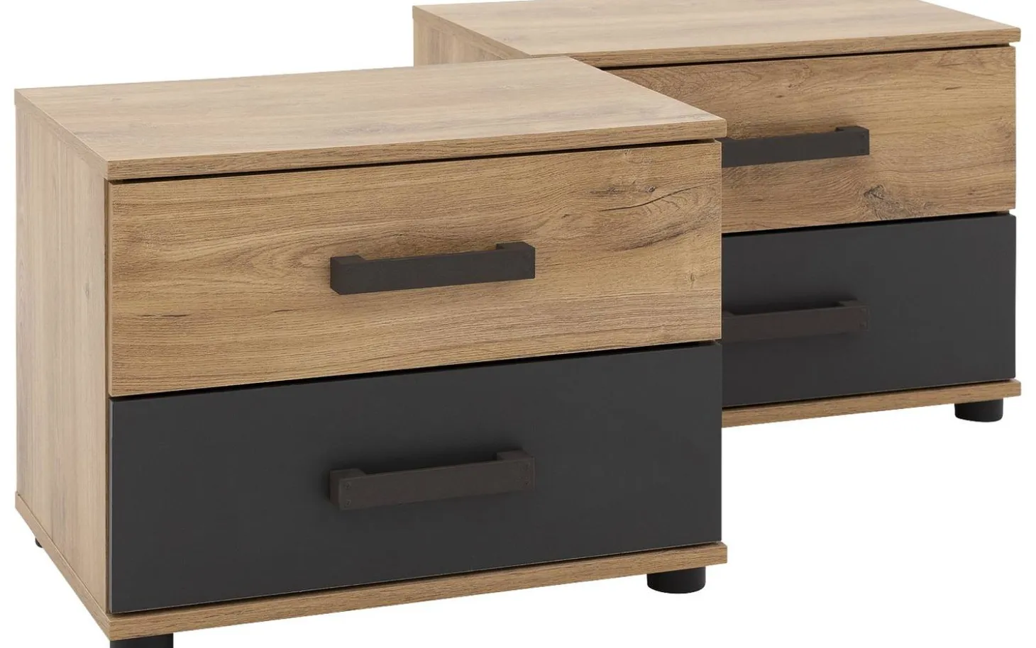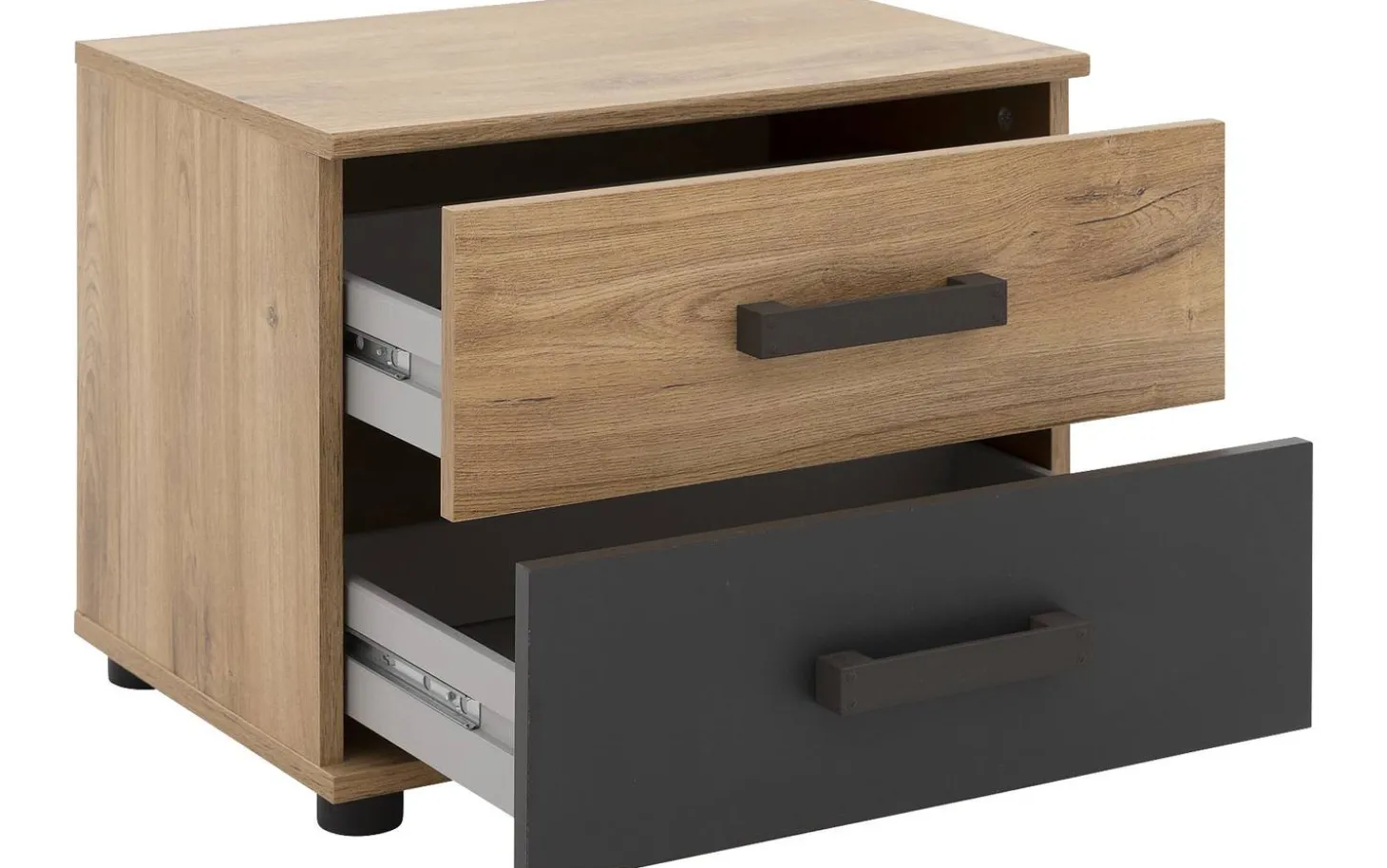 Sie sind ein echter Trendsetter? Dann benötigen Sie unbedingt das Nachtschränkchen Industrial! Dieses Nachtschränkchen passt durch die Verwendung von Holz in Kombination mit Anthrazit perfekt in einen industriellen Wohnstil. Die zwei praktischen Schubladen für all Ihre persönlichen Gegenstände sind mit passenden Griffen versehen. Mit dem passenden Bett und Kleiderschrank aus der Serie Industrial schaffen Sie ein ansprechendes Gesamtbild in Ihrem Schlafzimmer.