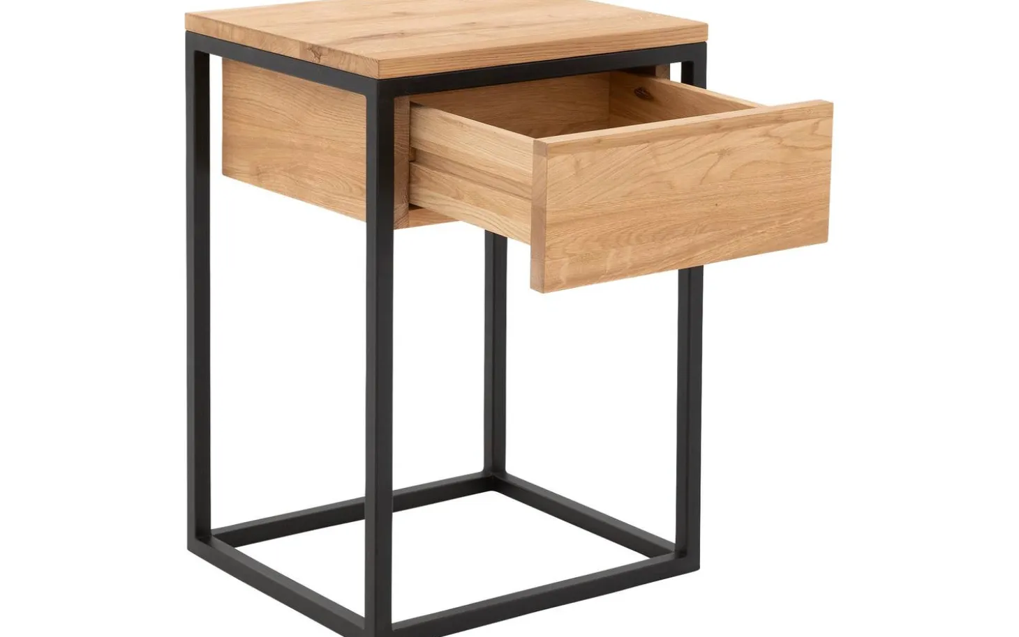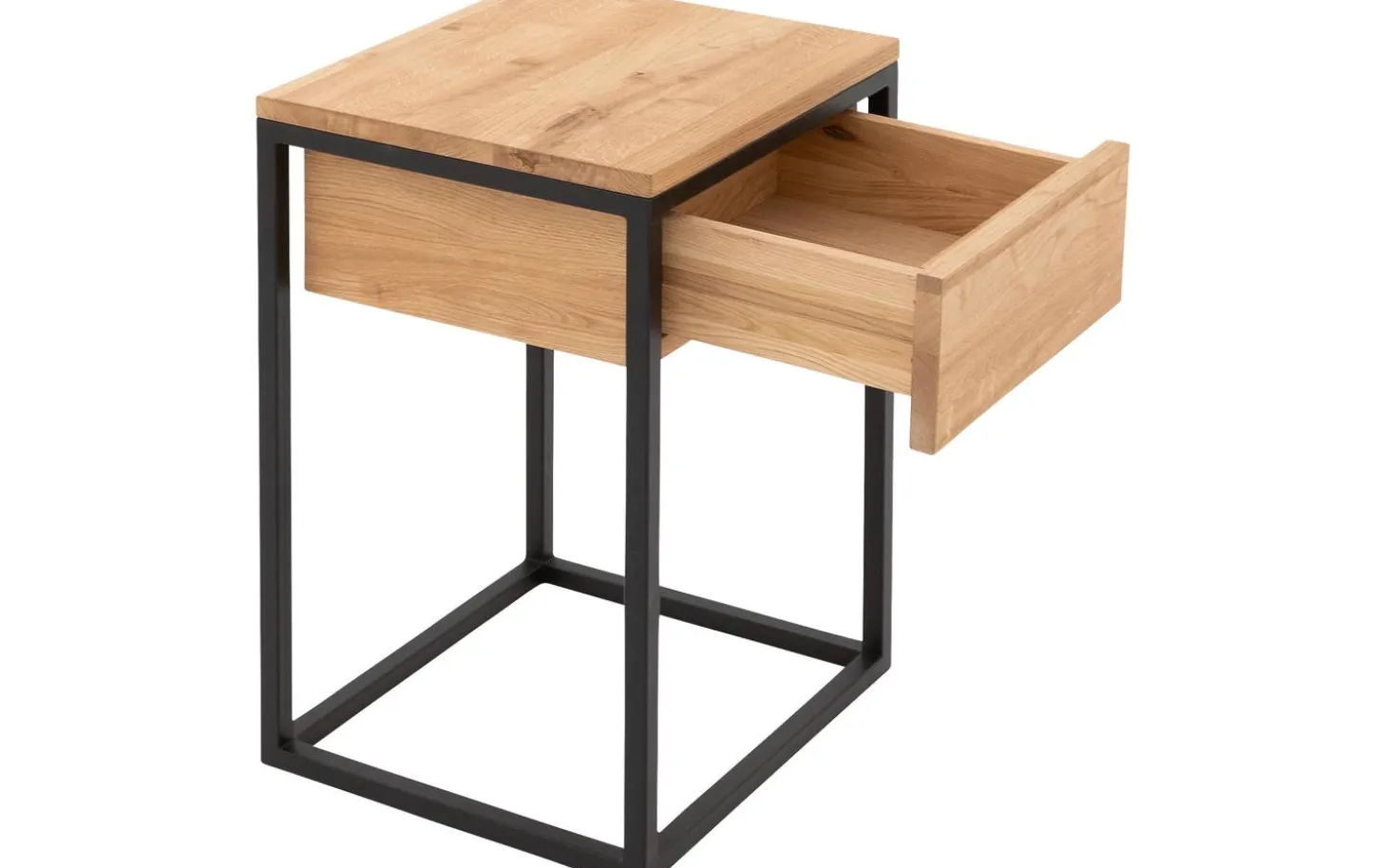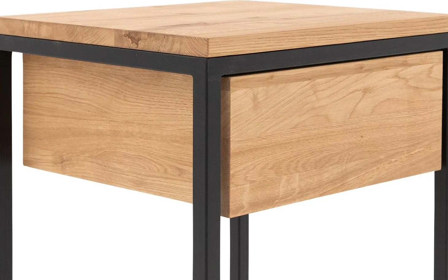 Das Nachtschränkchen Lord ist dank seines industriellen Designs mit Stahlgestell ein echter Blickfang in Ihrem Schlafzimmer. Die Schublade und die Oberplatte sind sorgfältig aus hochwertigem Eichenholz gefertigt, das sich durch Maserungen und Farbnuancen kennzeichnet. Damit verleiht das Nachtschränkchen Ihrem Schlafzimmer eine natürliche und warme Optik. Genügend Stauraum bietet es zur Aufbewahrung Ihrer Siebensachen, die Sie gerne zur Hand haben, wie beispielsweise Ihr Lieblingsbuch oder eine pflegende Handcreme. Dekorieren Sie das Ganze mit persönlichen Accessoires im Stil Ihrer Einrichtung!