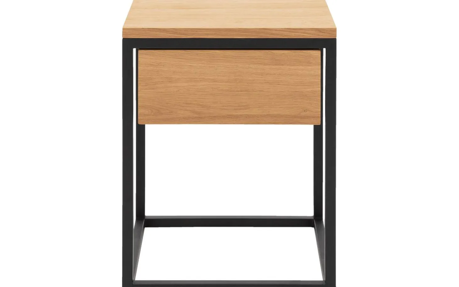 Das Nachtschränkchen Lord ist dank seines industriellen Designs mit Stahlgestell ein echter Blickfang in Ihrem Schlafzimmer. Die Schublade und die Oberplatte sind sorgfältig aus hochwertigem Eichenholz gefertigt, das sich durch Maserungen und Farbnuancen kennzeichnet. Damit verleiht das Nachtschränkchen Ihrem Schlafzimmer eine natürliche und warme Optik. Genügend Stauraum bietet es zur Aufbewahrung Ihrer Siebensachen, die Sie gerne zur Hand haben, wie beispielsweise Ihr Lieblingsbuch oder eine pflegende Handcreme. Dekorieren Sie das Ganze mit persönlichen Accessoires im Stil Ihrer Einrichtung!