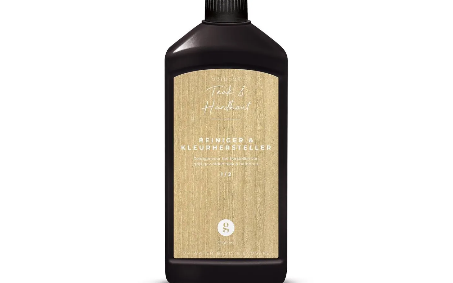 Goossens Teak & Hardhout Reiniger & Kleurhersteller reinigt teak en andere hardhoutsoorten grondig en diepgaand en verwijdert vuil en vlekken. Herstelt tevens de oorspronkelijke lichtbruine kleur en opent de poriën van het hout.