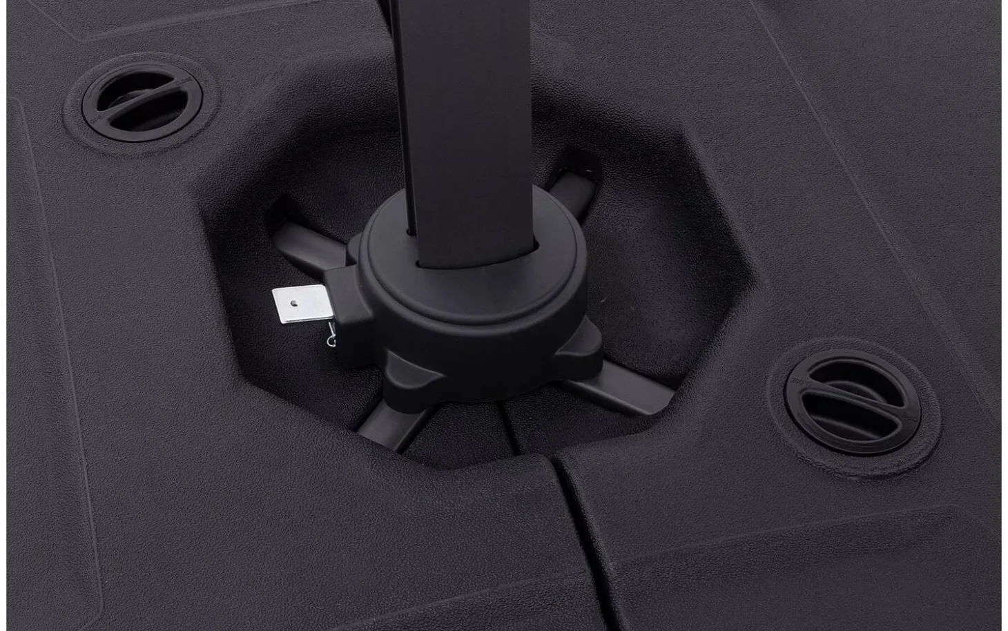 Zweefparasol Svea biedt praktisch comfort voor elke buitenruimte. Het stevige doek biedt bescherming tegen felle zon. De zwarte kleur geeft je tuin of terras een moderne, strakke uitstraling en past bij vrijwel elk tuinmeubel.