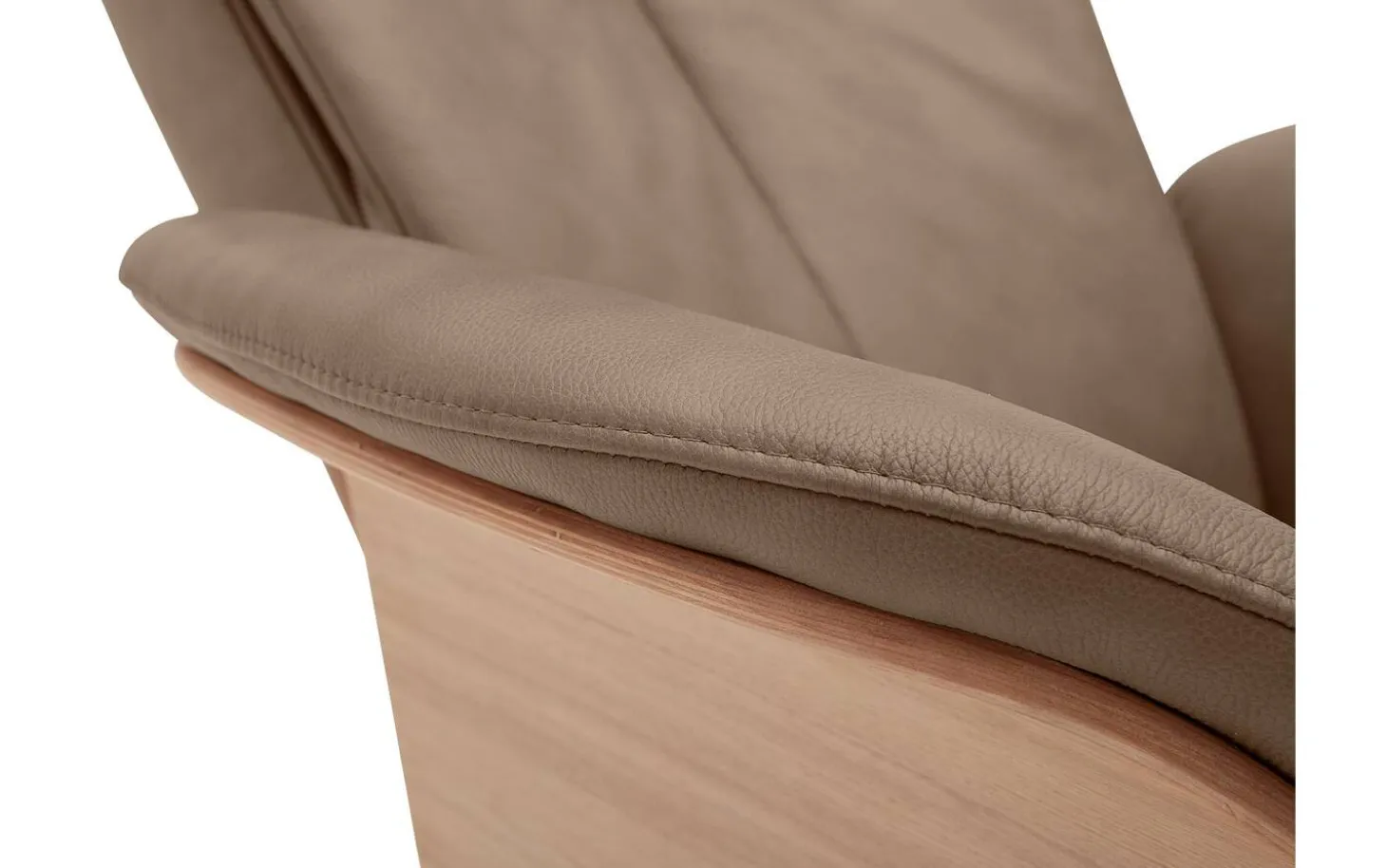 Relaxfauteuil Bergen heeft dankzij het prachtige design en de combinatie van een eikenhouten voet en master lederen bekleding een luxe uitstraling. De fauteuil heeft een stevige, ondiepe zit en is voorzien van rug- en zitkussens gevuld met luxafoam. Hierdoor geniet jij van ultiem zitcomfort en kan je heerlijk relaxen. Zet de fauteuil eenvoudig met de hand in de door jouw gewenste relaxstand. Wil je nog meer comfort? Het is mogelijk om de fauteuil te bestellen met elektrische relaxfunctie.