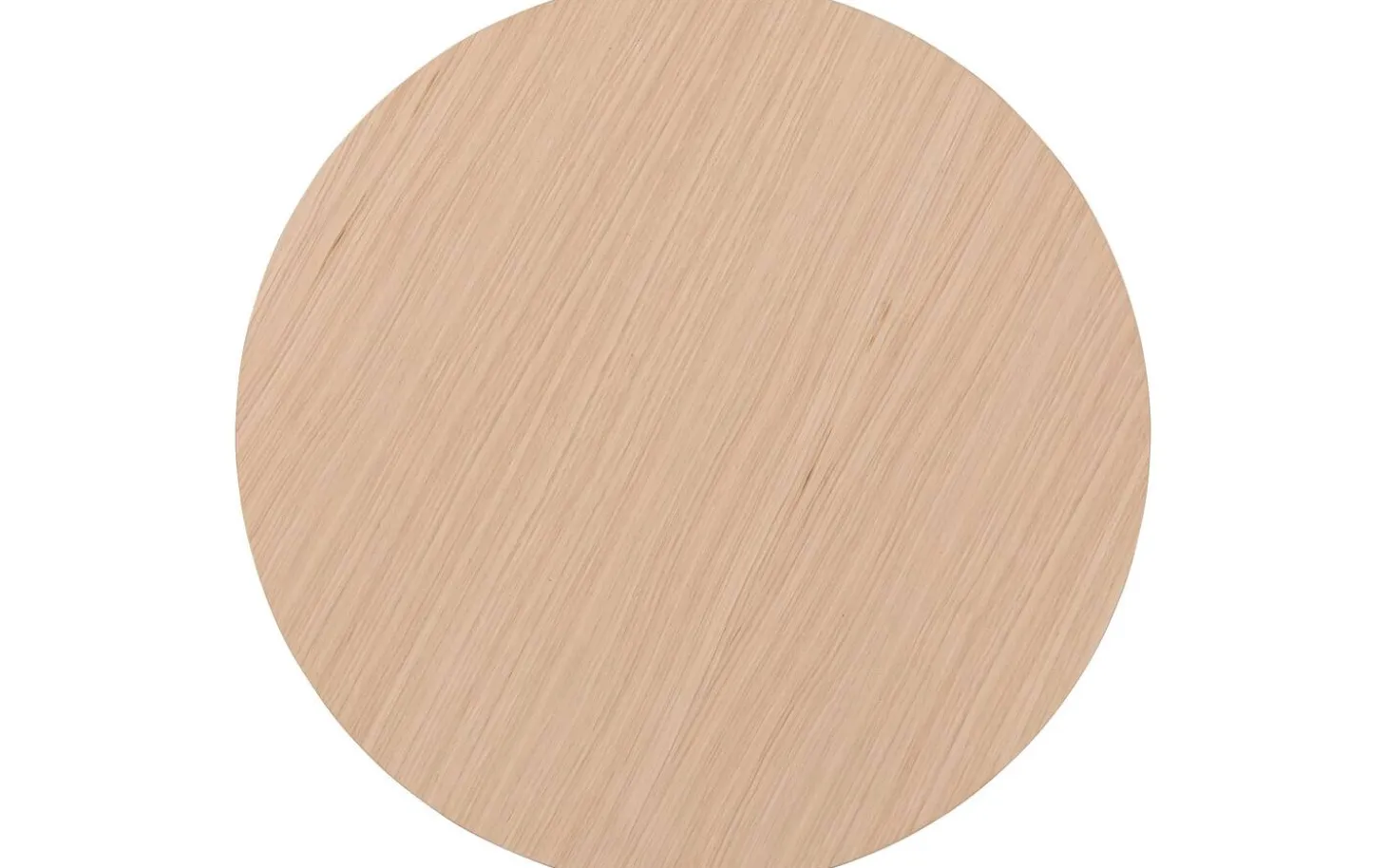 Die runde Tischplatte ist aus Eichenfurnier mit einer weißen Ölbehandlung gefertigt. Diese Behandlung schützt das Holz vor Flecken und bewahrt die natürliche Ausstrahlung. Die glatte Oberfläche ist einfach zu reinigen.