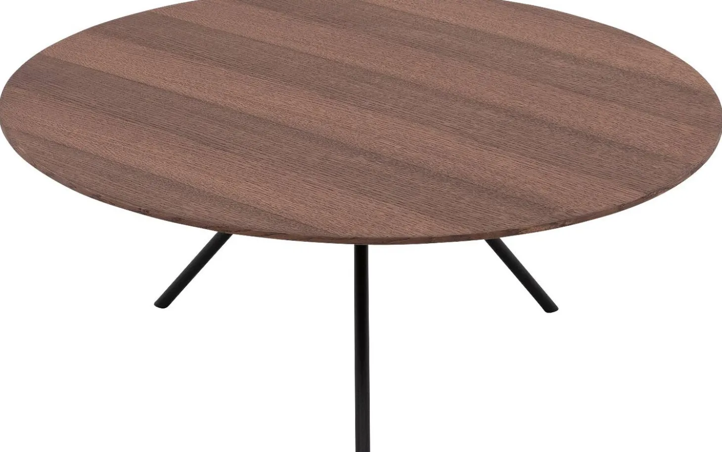 Die Platte ist aus Eichenfurnier in Nussfarbe mit Soft-Touch-Lackierung gefertigt. Diese Lackschicht schützt das Holz und hält die natürliche Maserung sichtbar und fühlbar. Die matte Ausstrahlung verleiht dem Tisch einen warmen, authentischen Look.