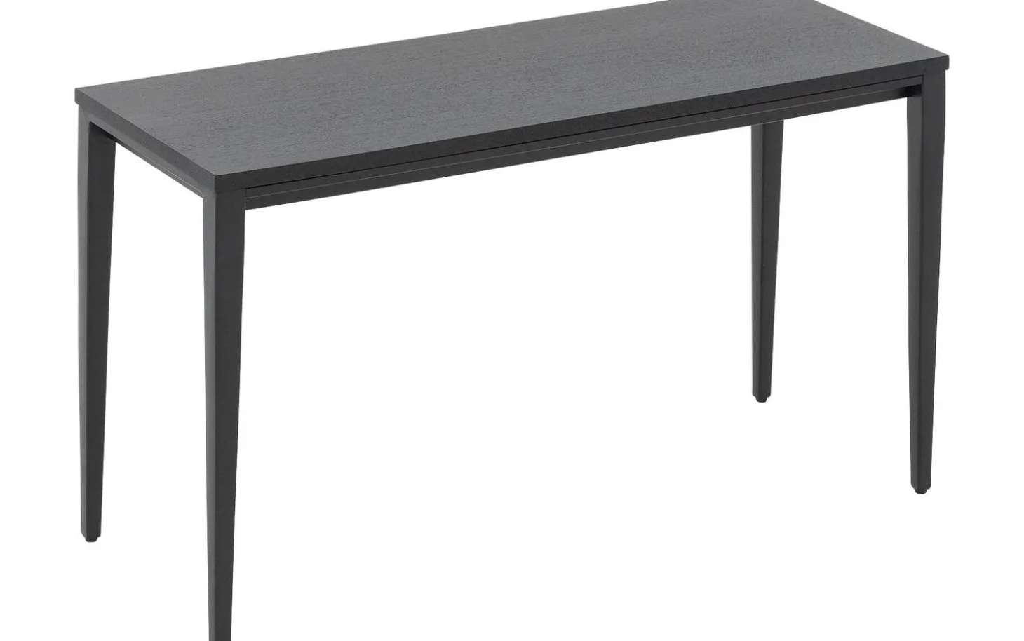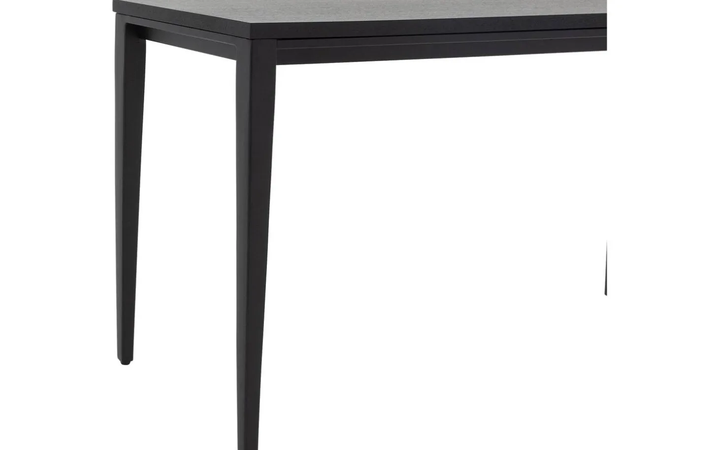 Die vier konischen Beine aus schwarz pulverbeschichtetem Metall verleihen Stabilität und einen modernen Touch. Durch ihre schlanke Form wirkt der Tisch leicht und elegant, während sie dennoch festen Halt bieten.