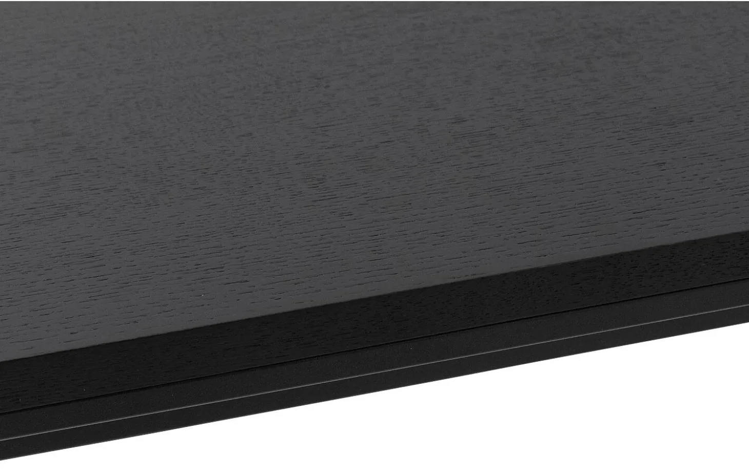 Die Tischplatte aus schwarz lackiertem Eschenfurnier weist eine schöne Holzstruktur auf, die durch die transparente Lackschicht gut sichtbar bleibt. Diese Verarbeitung schützt vor Flecken und Ringen und macht die Pflege einfach.