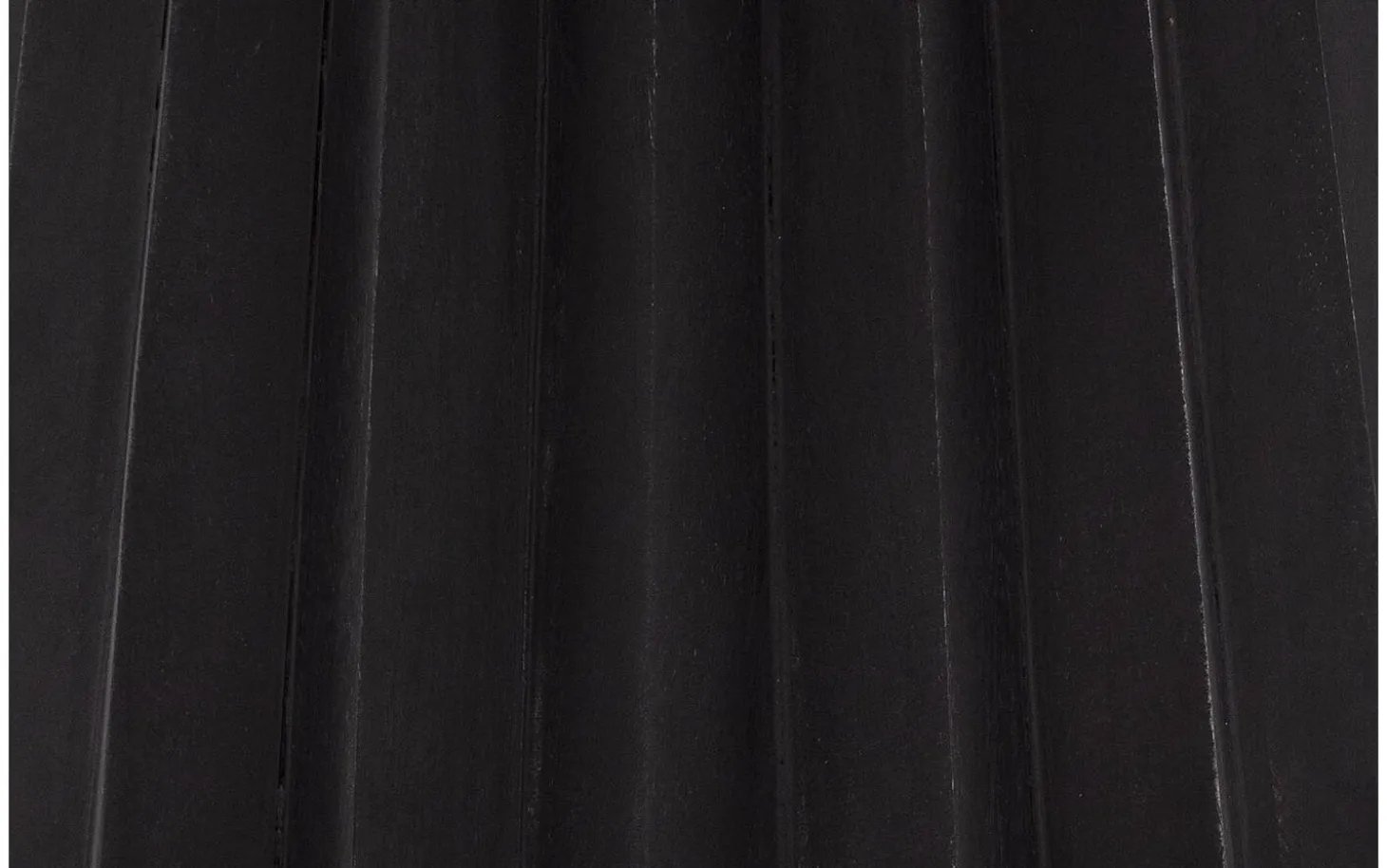 Die schwarze Mangoholz-Tischplatte behält ihre natürliche matte Ausstrahlung durch die Soft-Touch-Lackierung. Die charakteristische Maserung bleibt schön sichtbar und fühlbar, während der Lack vor täglichem Gebrauch schützt.