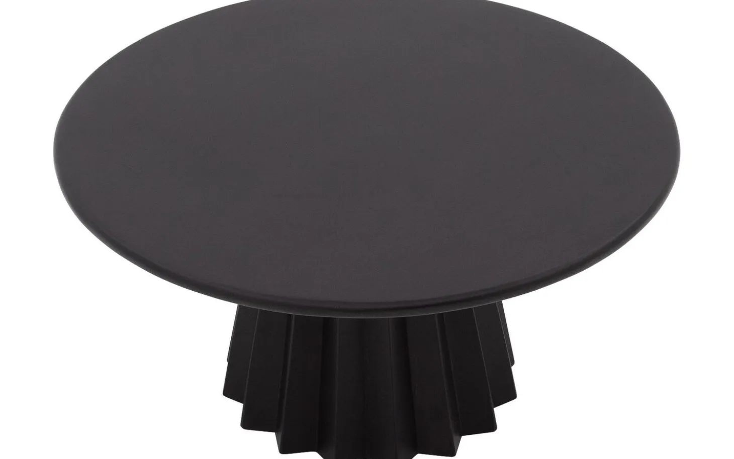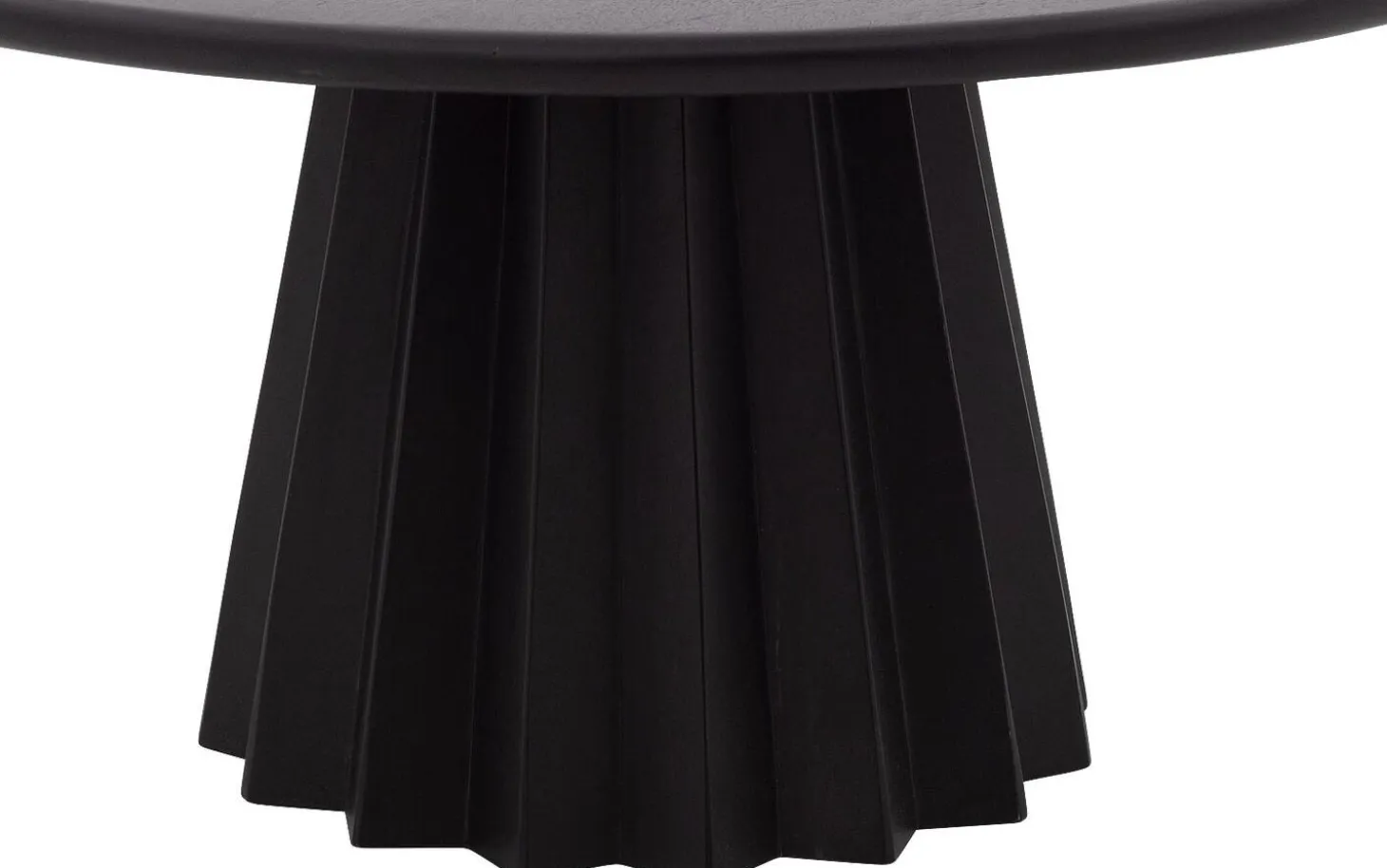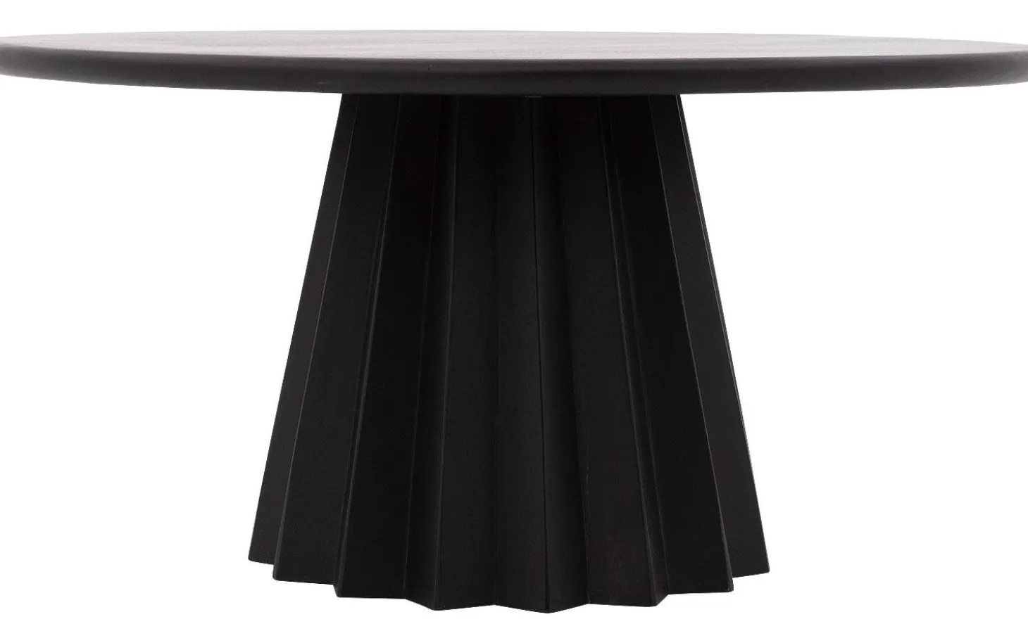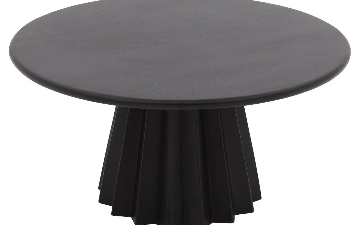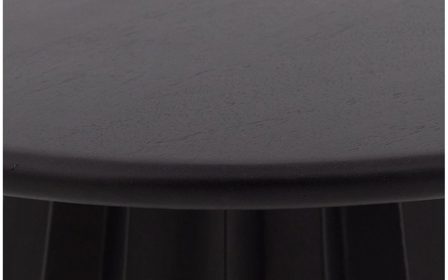 Het ronde blad van salontafel Felicia is vervaardigd uit mangohout, afgewerkt met een matte soft touch lak in zwart. De lak zorgt voor een gladde, fluweelachtige uitstraling die bijzonder mooi oogt in het licht.