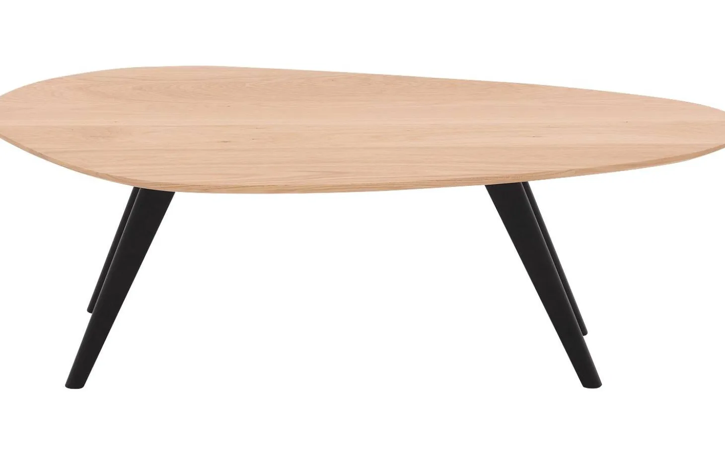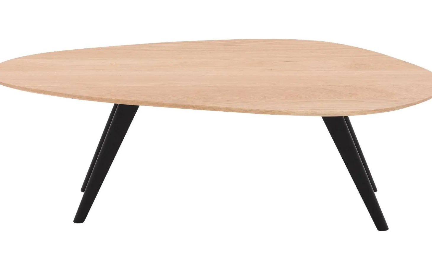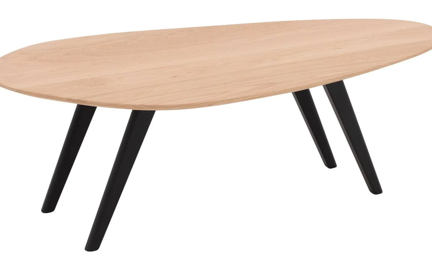 Organische eikenhouten salontafel Ferry heeft een asymmetrisch, vloeiend blad zonder rechte hoeken. De naturel soft touch lak op het eiken is licht en warm , dat geeft de tafel een frisse, luchtiger uitstraling. Passend bij Scandinavisch of modern wonen.