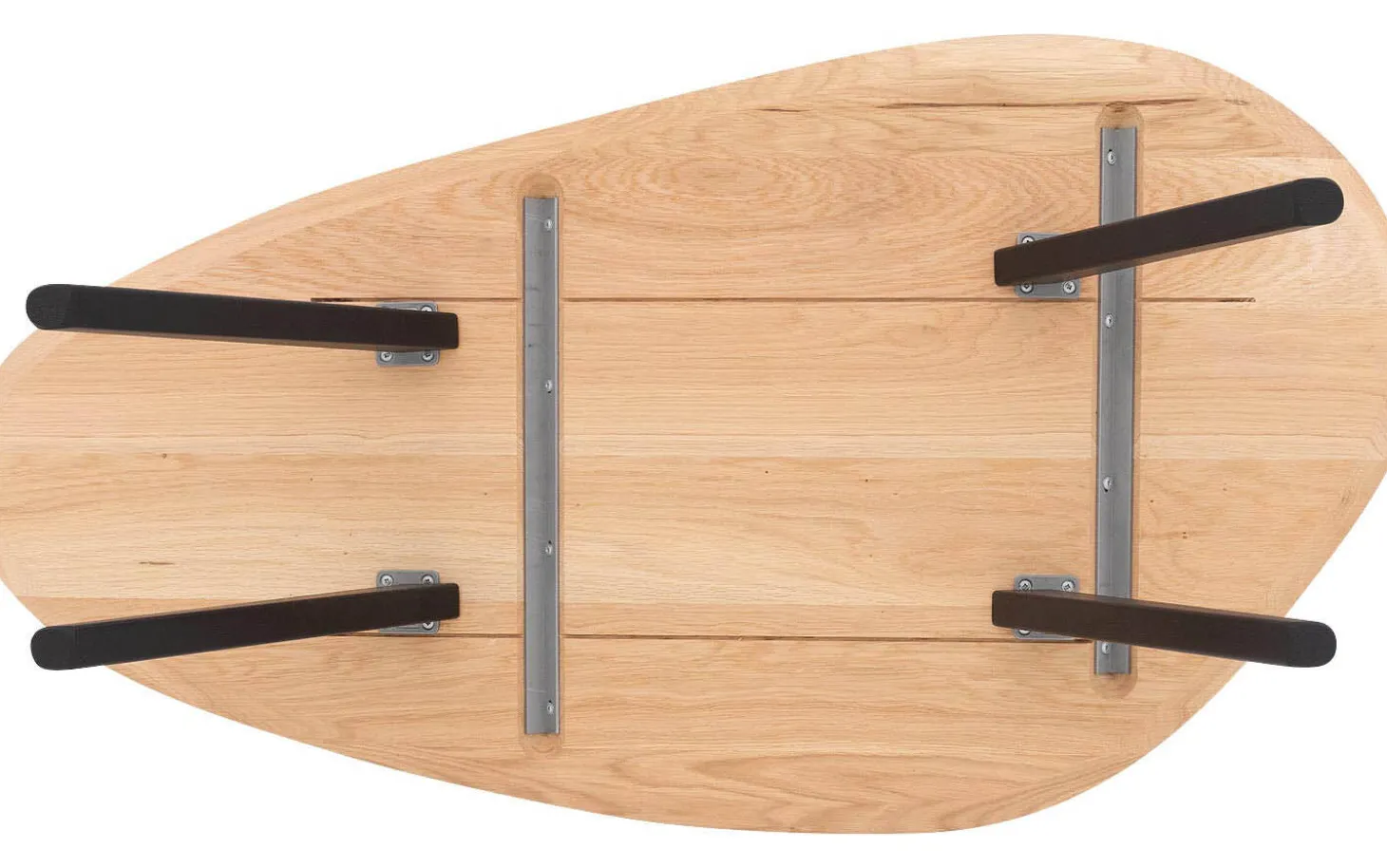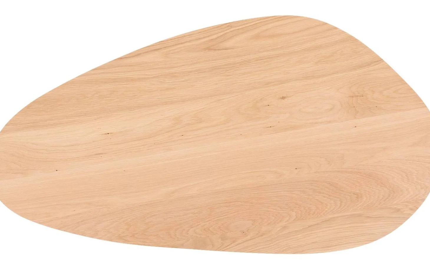 Het blad van salontafel Ferry is gemaakt van eikenhout, afgewerkt met een naturel soft touch lak. Die coating geeft het hout een matte, zijdeachtige touch die zowel mooi als aangenaam aanvoelt. De organische vorm maakt elke tafel licht uniek.