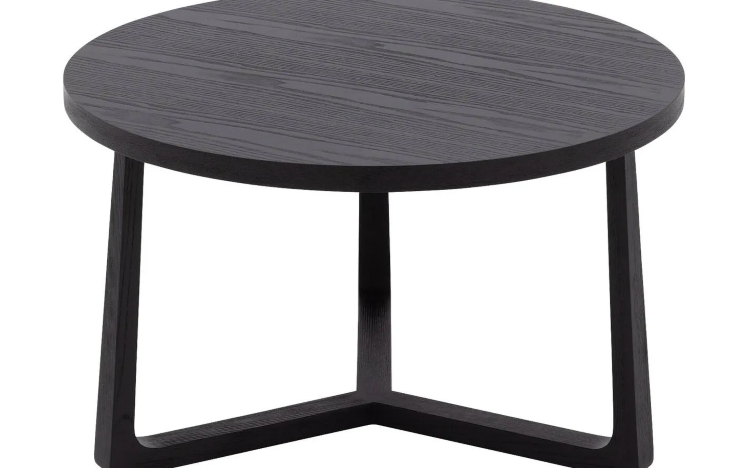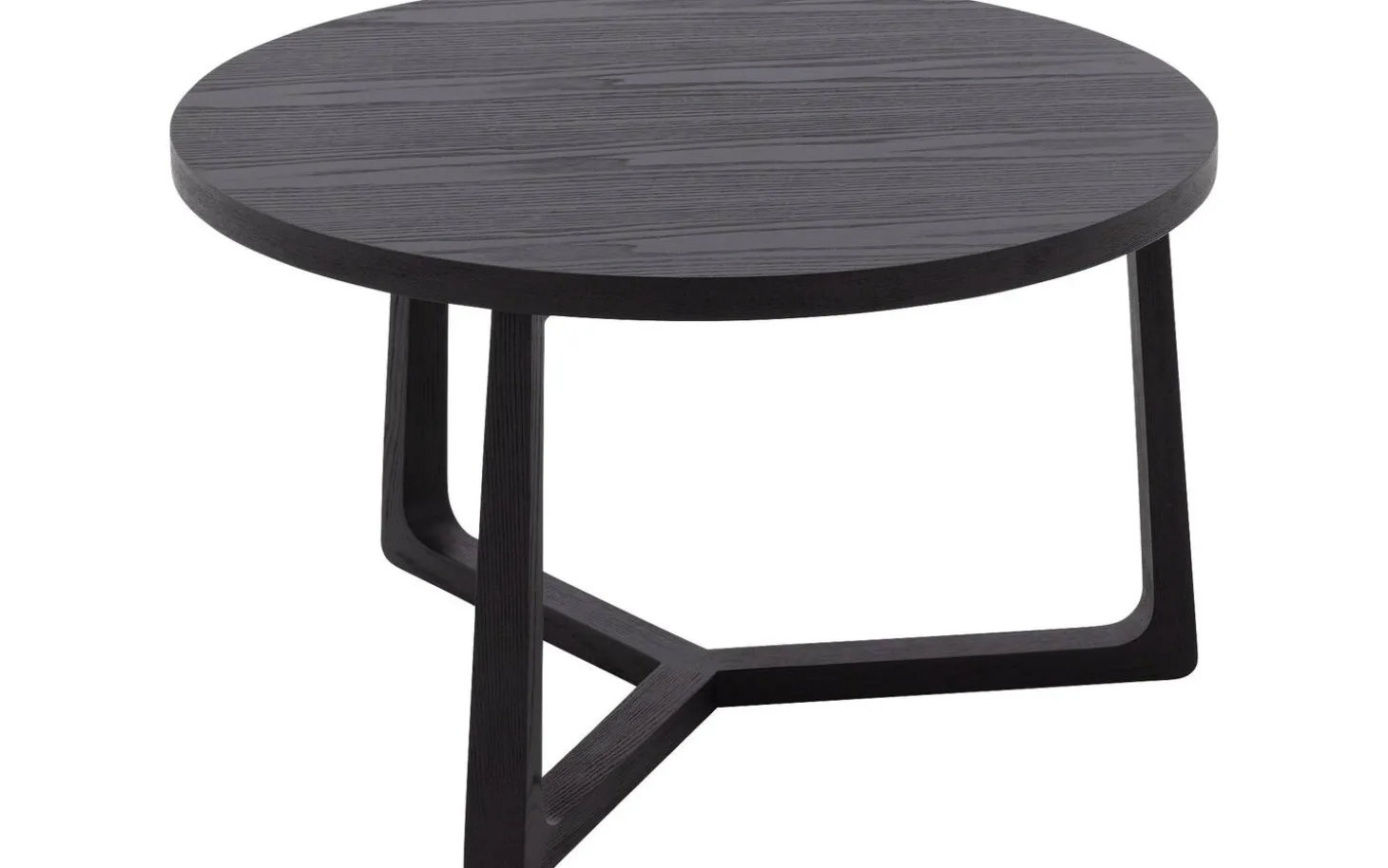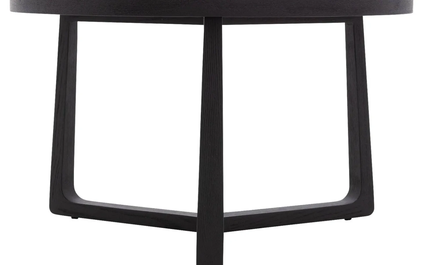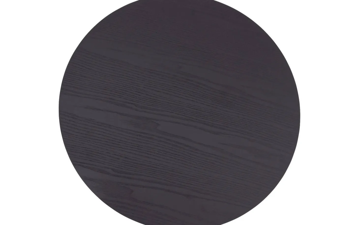 Die runde Tischplatte ist aus Eschenfurnier mit einer schwarzen lackierten Oberfläche gefertigt. Diese Schutzschicht sorgt dafür, dass der Tisch gut gegen den täglichen Gebrauch beständig ist und leicht sauber zu halten bleibt.
